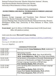 INTERNATIONAL CONFERENCE: ON MULTIMEDIA AND DIGITAL TECHNOLOGIES IN FOREIGN LANGUAGE ACQUISITION Download Program