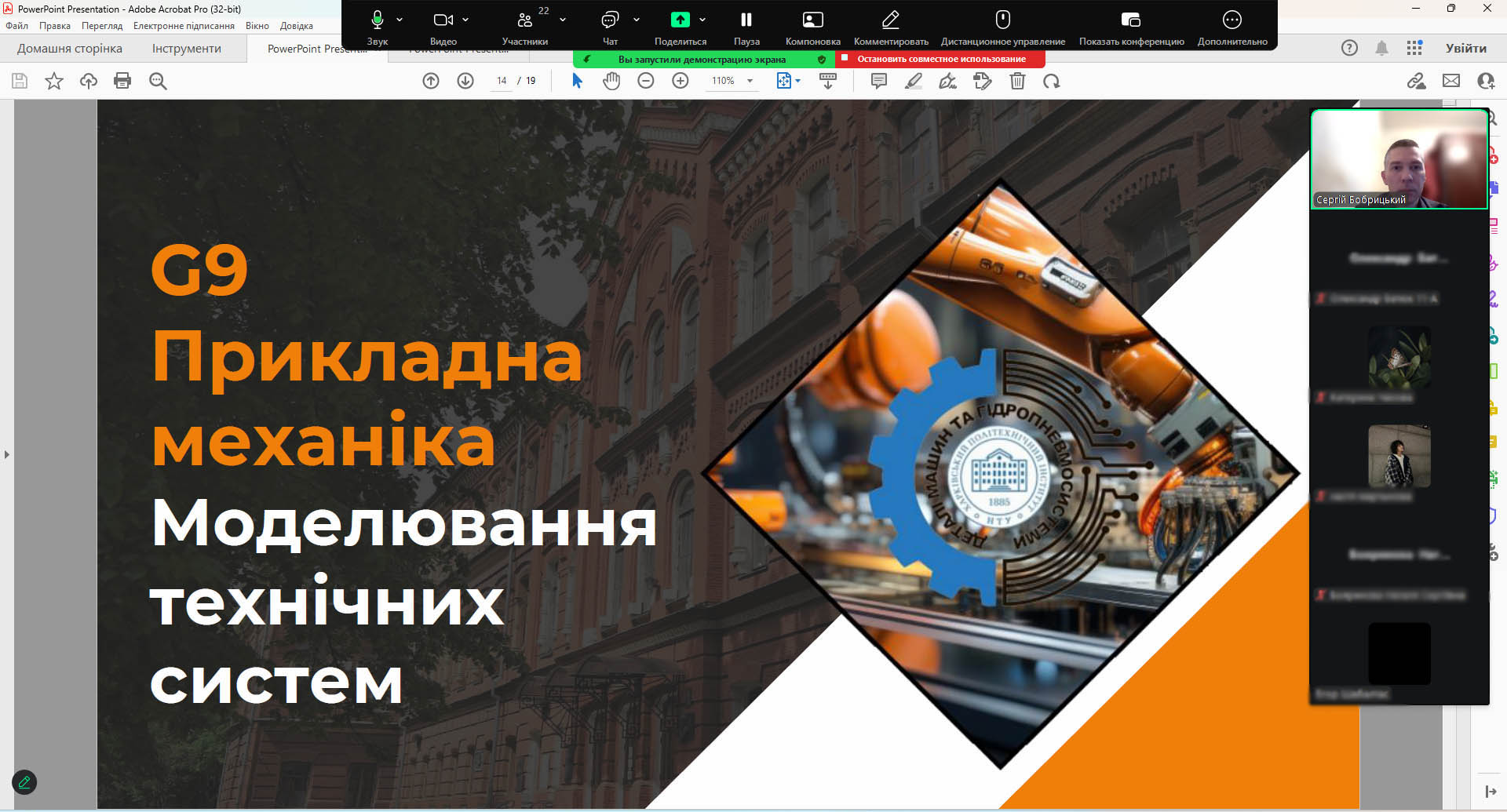 Співробітники кафедри Деталей машин та гідропневмосистем провели онлайн-зустріч з учнями 11-х класів комунального закладу “Харківський ліцей №126 Харківської міської ради”, яка була присвячена ознайомленню майбутніх випускників з Національним технічним університетом “Харківський політехнічний інститут”, ННІ Механічної їнженерії і транспорту та спеціальністю “Прикладна механіка”. Школярі дізнались про особливості вступу та навчання на освітній програмі “Моделювання технічних систем”.