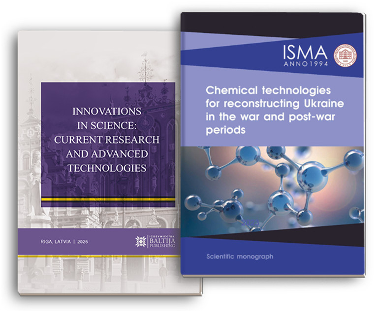- Kanunnikova N., Dobrozhan A. Methods of obtaining metal-oxide coatings on metallic surfaces and their features / Innovations in science: current research and advanced technologies : Scientific monograph. Part 1. Riga, Latvia : Baltija Publishing, 2025, 1–25. . https://doi.org/10.30525/978-9934-26-531-0-1