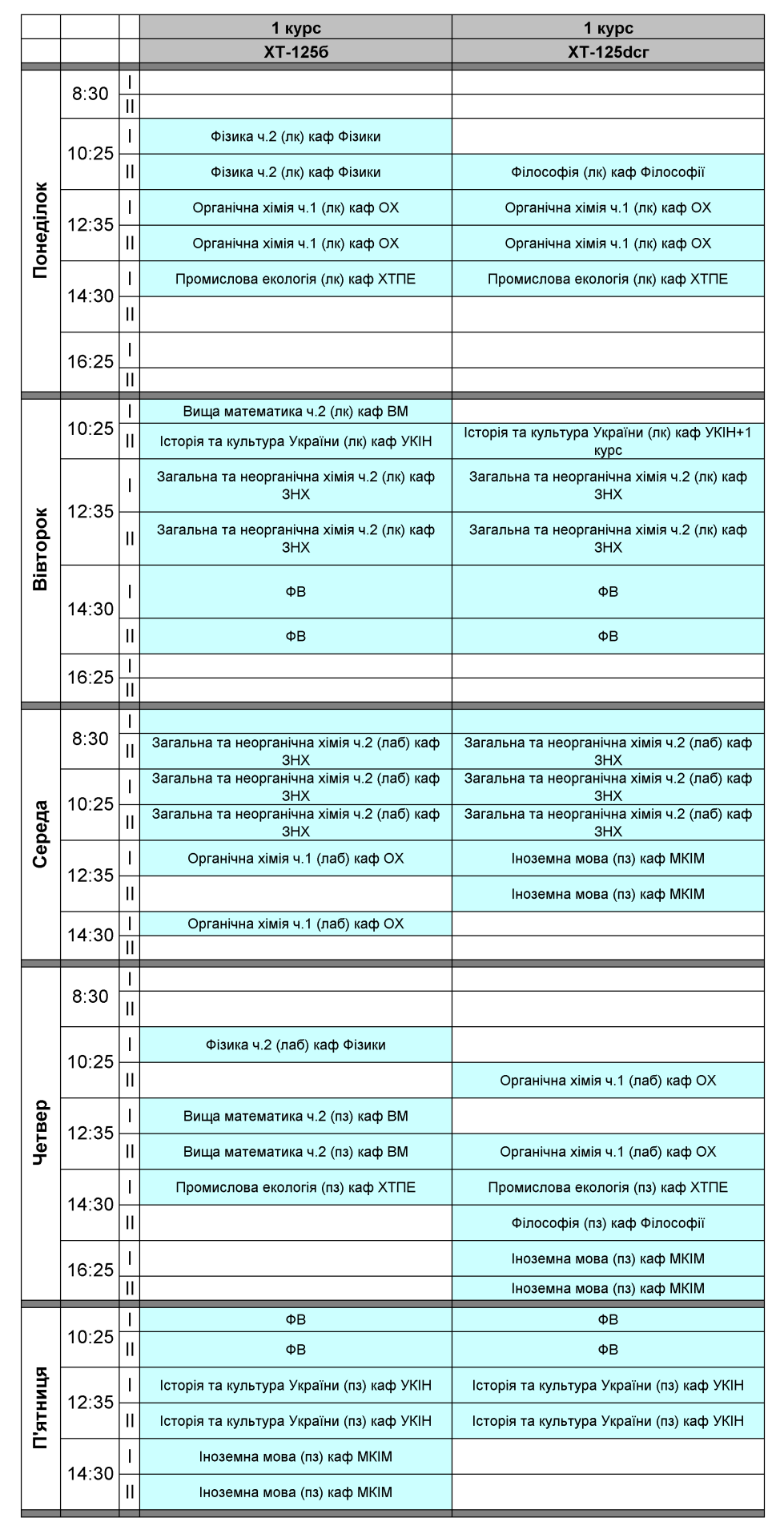 Розклад занять у весняному семестрі 2025/2026 навчального року