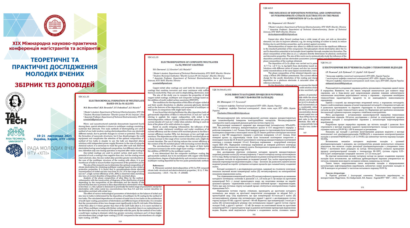 Новини та оголошення студентського наукового гуртка «Технічна електрохімія і хімічні технології рідкісних розсіяних елементів та матеріалів на їх основі»