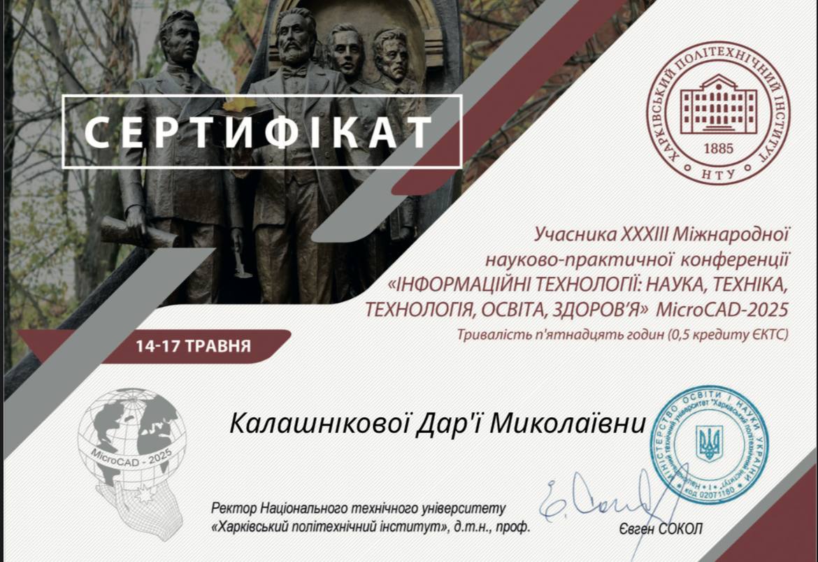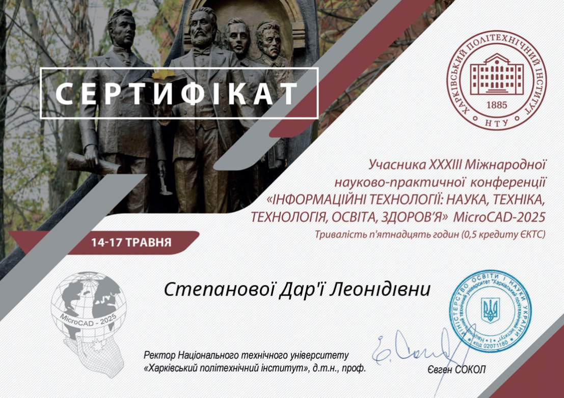 ХXХІІI МІЖНАРОДНА НАУКОВО-ПРАКТИЧНА КОНФЕРЕНЦІЯ «ІНФОРМАЦІЙНІ ТЕХНОЛОГІЇ: НАУКА, ТЕХНІКА, ТЕХНОЛОГІЯ, ОСВІТА, ЗДОРОВ’Я» (MicroCAD-2025), 14-17 травня, м. Харків