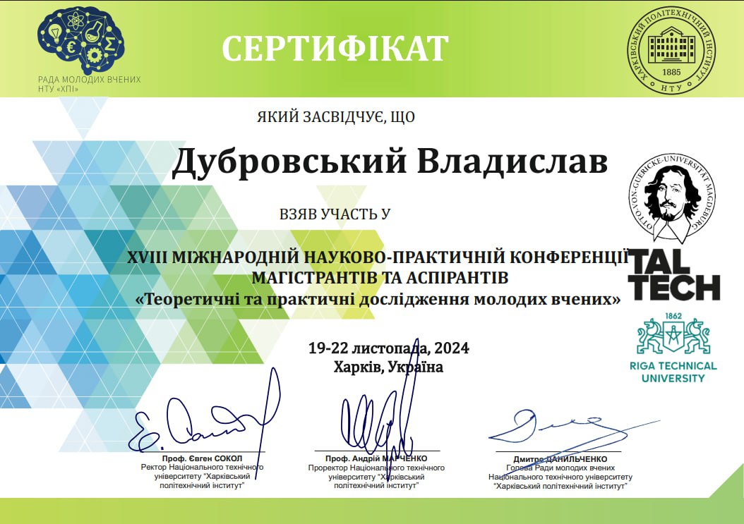 XIX Міжнародної науково-практичної конференції магістрантів та аспірантів “ТЕОРЕТИЧНІ ТА ПРАКТИЧНІ ДОСЛІДЖЕННЯ МОЛОДИХ ВЧЕНИХ”, 19–21 листопада 2025 року, м. Харків