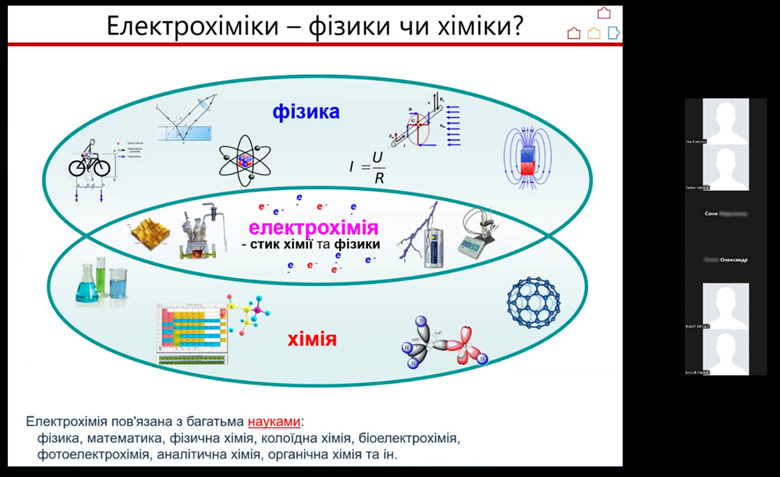22 грудня відбулась онлайн зустріч з учнями старших класів закладів освіти Немишлянського району м. Харкова. Вони ознайомились з освітньою програмою кафедри та умовами вступу. Основною темою для обговорення були можливості електрохімії для осадження покриттів з надзвичайними можливостями. Серед присутніх були учні, які у рамках наукової роботи Малої академії наук України під керівництвом доц. Майзеліс А.О. досліджували електрохімічний процес осадження покриттів та їх властивості та самостійно пересвідчились у тому, що сучасні матеріали можуть бути отримані відносно простим способом.
