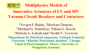 Bajda, Ye.I., Clemens, M., Pantelyat, M.G., Korol, O.G., Lelyuk, M.A. and Vyrovets, S.V.: Multiphysics models of innovative actuators of LV and MV vacuum circuit breakers and contactors.