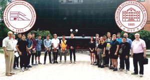 Студенти та викладачі біля навчального макету тепломеханічної системи паровоза, створеної за ідеєю П. М. Мухачова, реставрованої у 2009 р. фахівцями кафедри