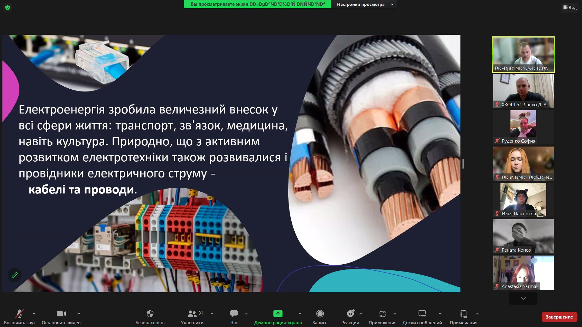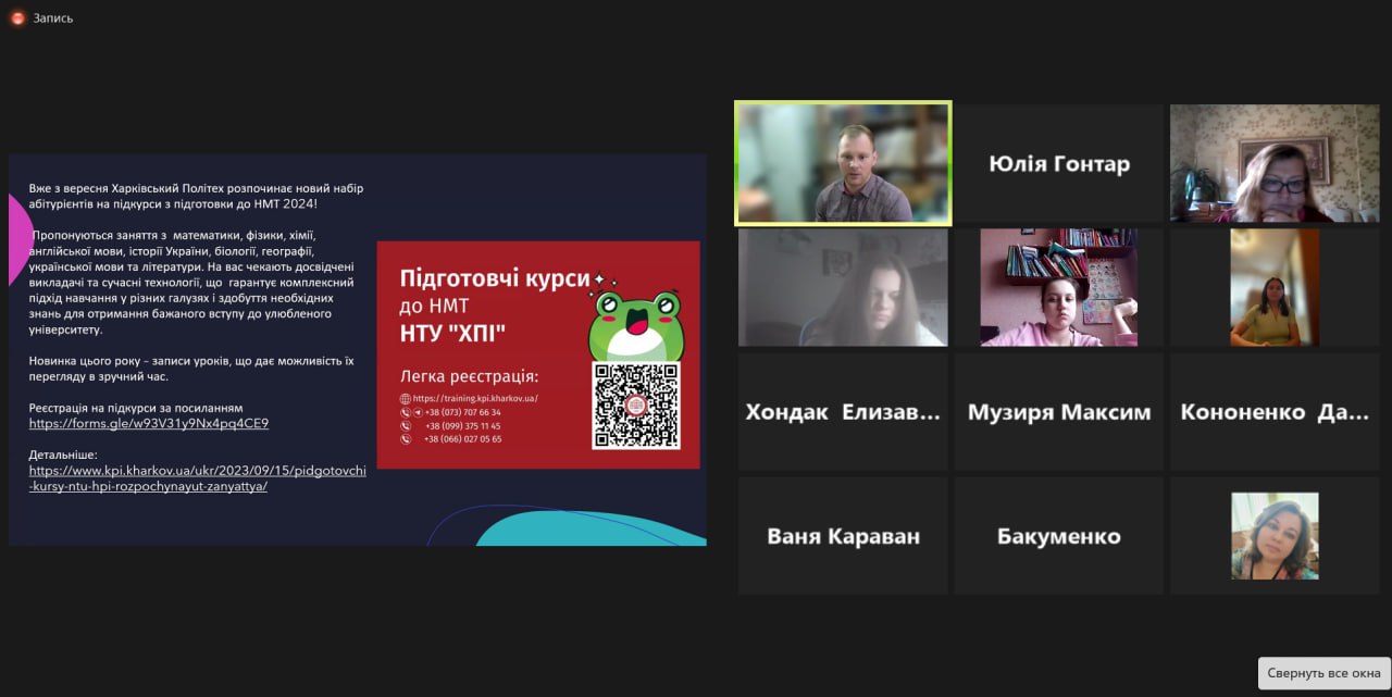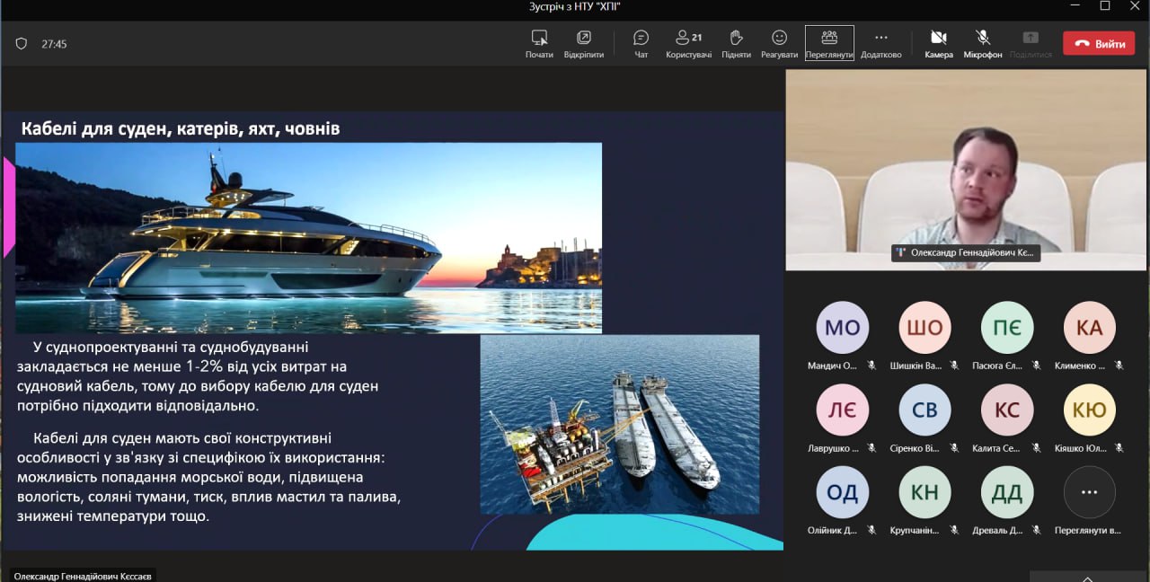 Співробітники кафедри Електроізоляційної та кабельної техніки НТУ «ХПІ» 30 вересня 2025 р. спільно з представницею заводу «ЗЗКМ» Наталією Охмат провели онлайн-зустріч з випускниками КЗ «Чугуївський ліцей №1 ім.І.Ю.Рєпіна» Чугуївської міської ради Харківської області.