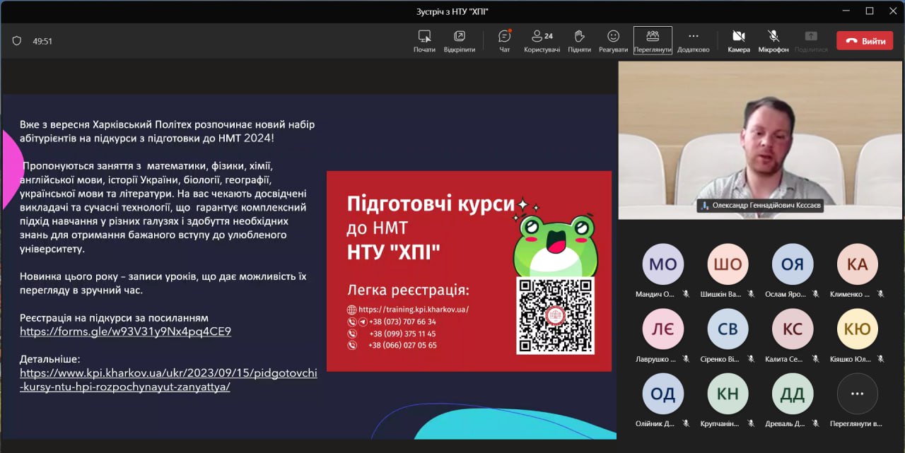 07 листопада 2024 року пройшла онлайн зустріч випускників “Чугуївського ліцею №6″ із завідувачем кафедри ЕІКТ Олександром Кєссаєвим.