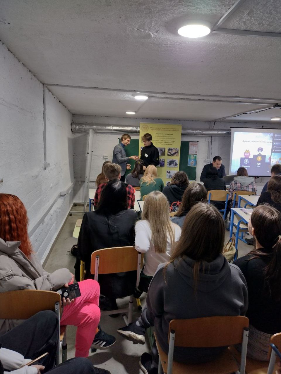 Викладачі кафедри «Електричні машини» (доц. Шилкова Л. В. та доц. Дунєв О. О.) познайомили їх із правилами майбутньої вступної кампанії та детально розповіли про те, як підвищити свої шанси при вступі на бюджетні пропозиції.