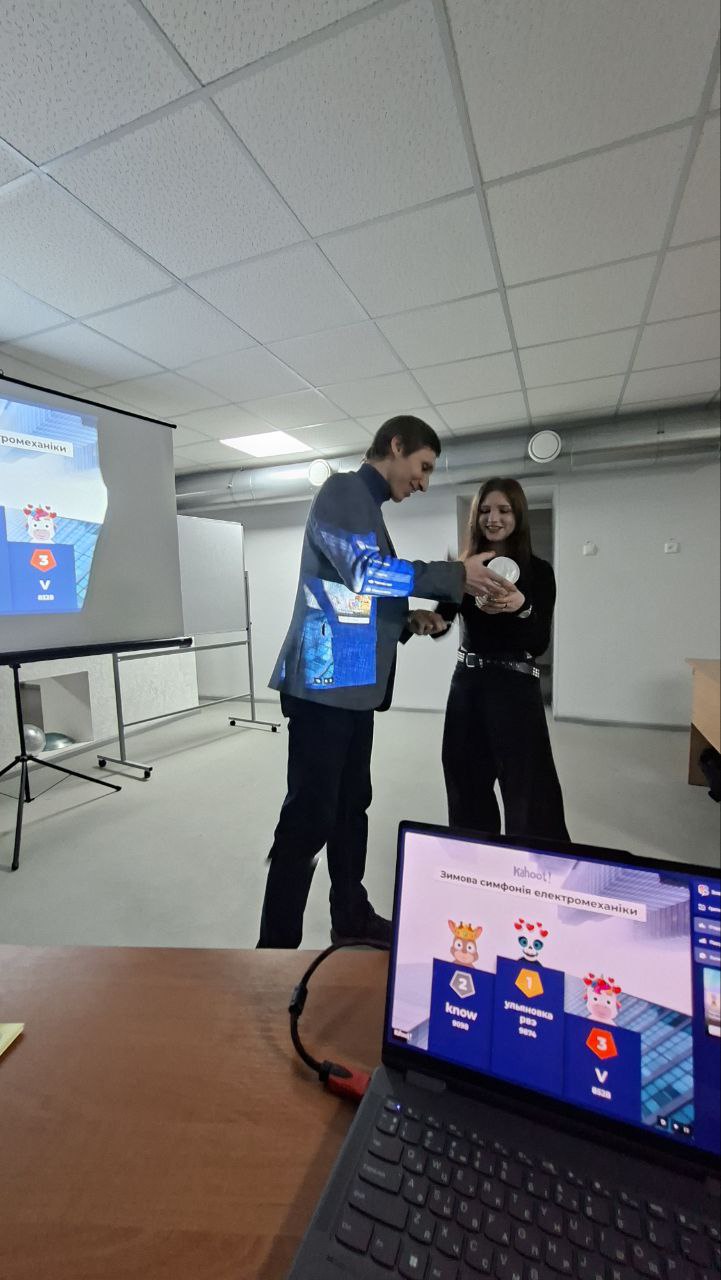 🎮 Завершили заняття інтерактивною вікториною у Kahoot: найактивніші та найкращі учасники отримали смачні призи від кафедри електричних машин.
