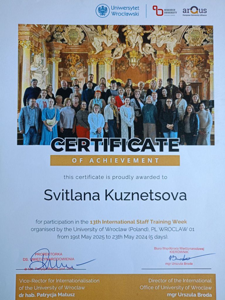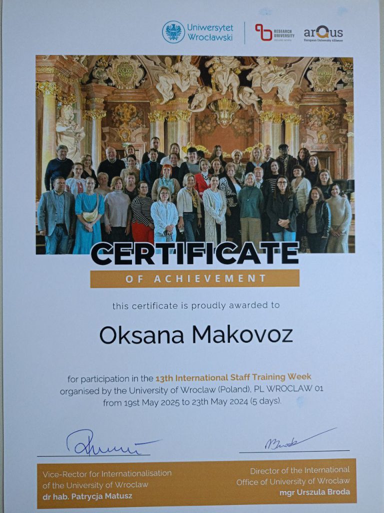 Щиро дякуємо організаторам заходу — Вроцлавському університету, Віце-ректору з міжнародної діяльності доктору габілітованому Патриції Матуш та керівнику Міжнародного офісу магістру Уршулі Брода, заступнику керівника Барбарі Скалацькій-Харольд за теплий прийом і можливість долучитися до цієї ініціативи.