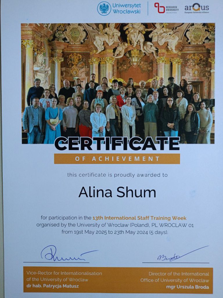 📍З 19 по 23 травня 2025 року представники Навчально-наукового інституту економіки, менеджменту і міжнародного бізнесу (ННІ ЕММБ) НТУ «ХПІ» взяли участь у 13-му Міжнародному тижні підготовки персоналу (13th International Staff Training Week), що проходив на базі Вроцлавського університету (Польща) й об’єднав понад 40 учасників із різних університетів Європи та світу.