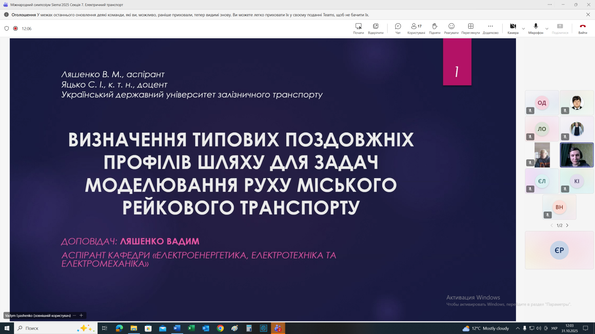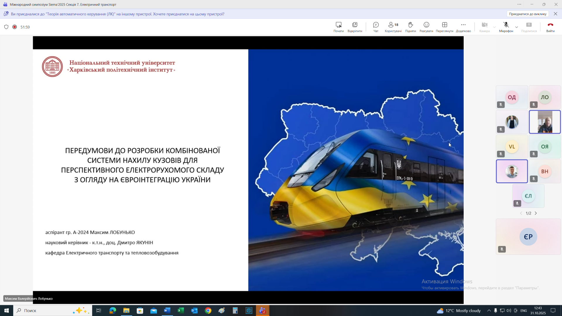On October 31, 2025, as part of the SIEMA 2025 International Symposium on Electromechanics and Automation, Session No. 7 titled “Electric Transport” took place. The session was organized and hosted by the Department of Electric Transport and Diesel Locomotive Engineering of NTU “KhPI”.