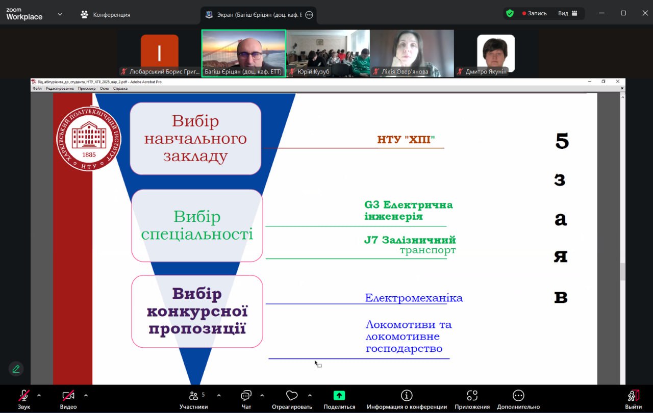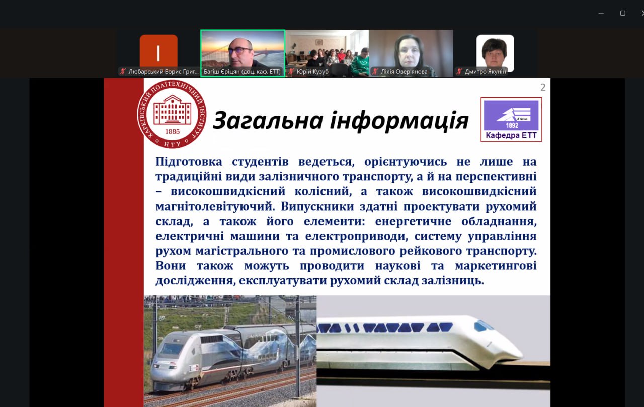 On November 25, 2025, the Department of Electric Transport and Diesel Locomotive Engineering of NTU “KhPI” held another career guidance online meeting for students of Lyceum No. 2 of the Semenivka Settlement Council (Kremenchuk district, Poltava region). The event aimed to support prospective applicants and assist them in choosing their future educational path.