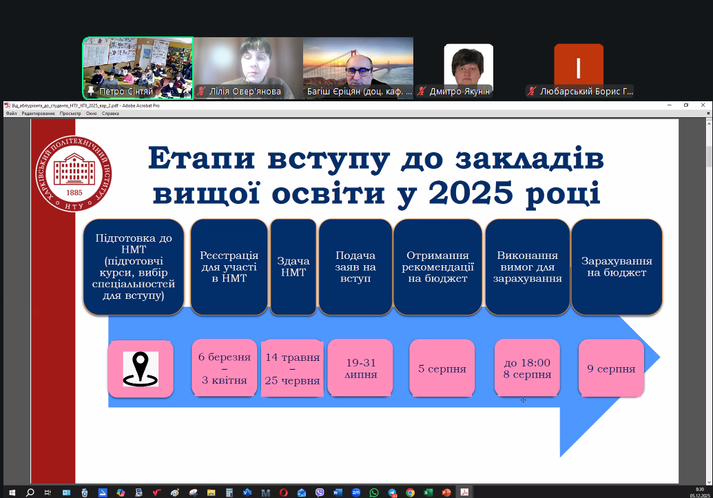 Важливою практичною частиною стало ознайомлення учнів з попередніми правилами вступу до НТУ «ХПІ» у 2026 році. Майбутнім абітурієнтам детально роз’яснили ключові етапи вступної кампанії, терміни та особливості, що допомагає їм заздалегідь ефективніше планувати підготовку.