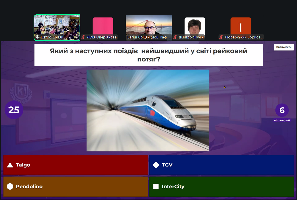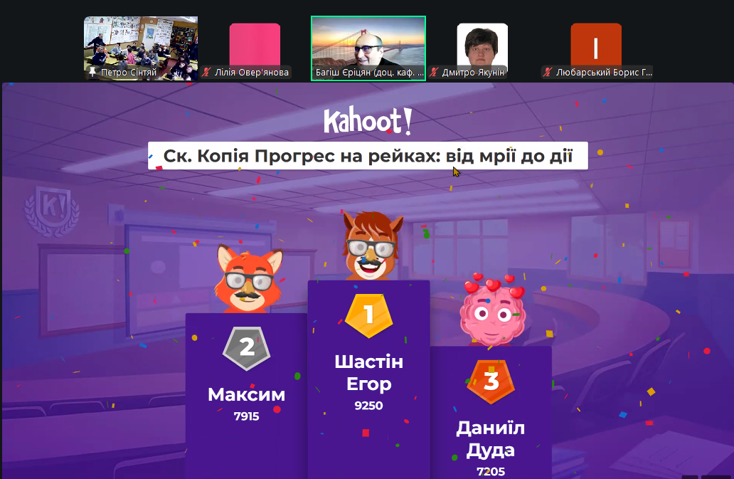 Яскравим фіналом зустрічі стала тематична Kahoot-вікторина, присвячена залізничній техніці, історії та цікавим фактам про залізницю. Інтерактивний формат дозволив учням у реальному часі перевірити свої знання та ерудицію. Переможець цієї захопливої боротьби отримав пам’ятний приз від кафедри.