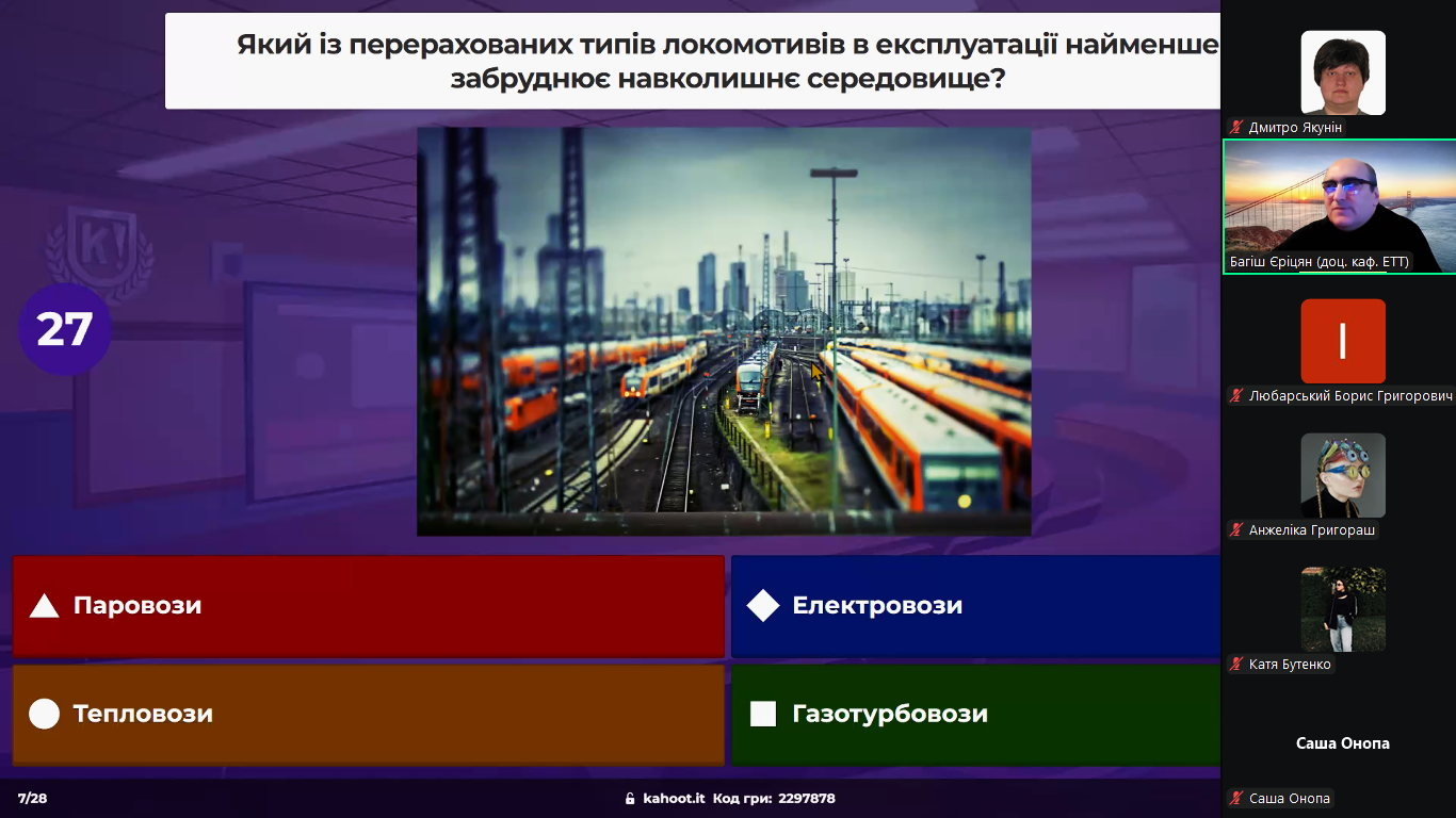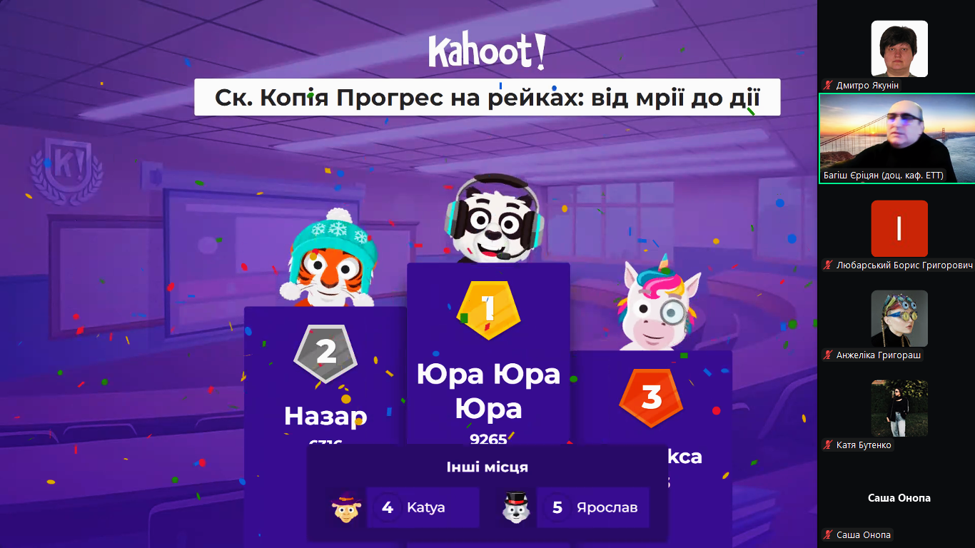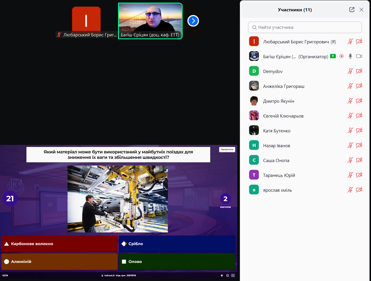Традиційною родзинкою зустрічі стала тематична Kahoot-вікторина, присвячена залізничній техніці, історії та цікавим фактам галузі. Інтерактивний формат створив атмосферу азарту та змагання, а переможець отримав пам’ятний приз від кафедри.
