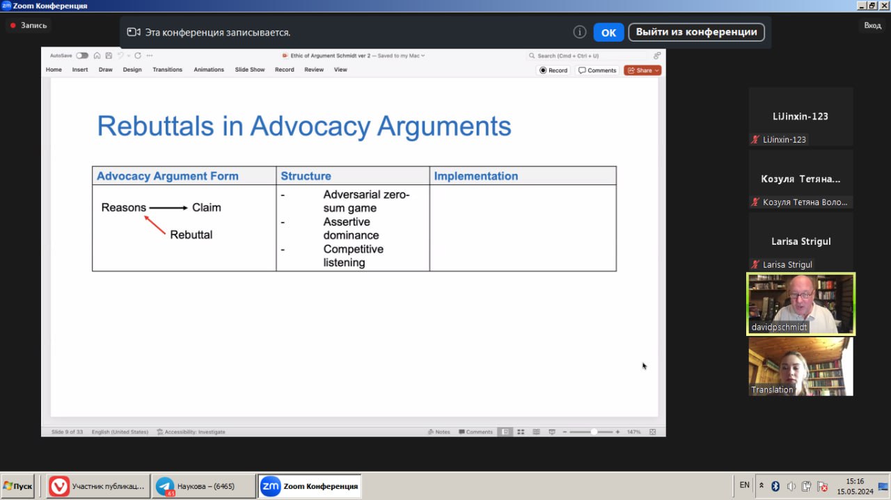 Викладачі, аспіранти кафедри та студенти спеціальності 101 Екологія та 183 Технології захисту навколишнього середовища з зацікавленістю взял участь у науково-практичному семінарі «Етика аргументу для турбулентного світу», який відбувся 15 травня 2024.