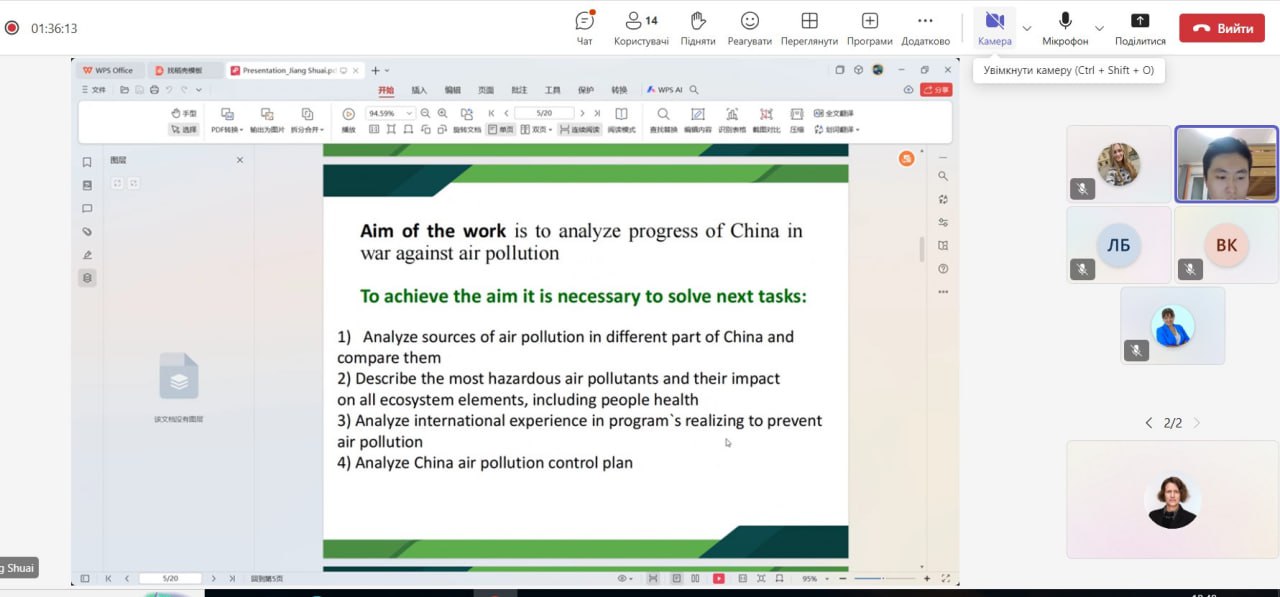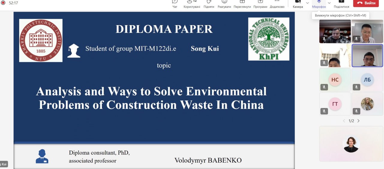 All topics of master diploma were devoted to China’s ecological problem and ways for their solving. Among topics were solving environmental problems of construction waste in China, recycling mechanism of dissolved organic matter in aquatic ecosystem, environmental impact of air conditioning, waste wood chip carbon production and waste heat utilization, air pollution in China and programs to solve it.