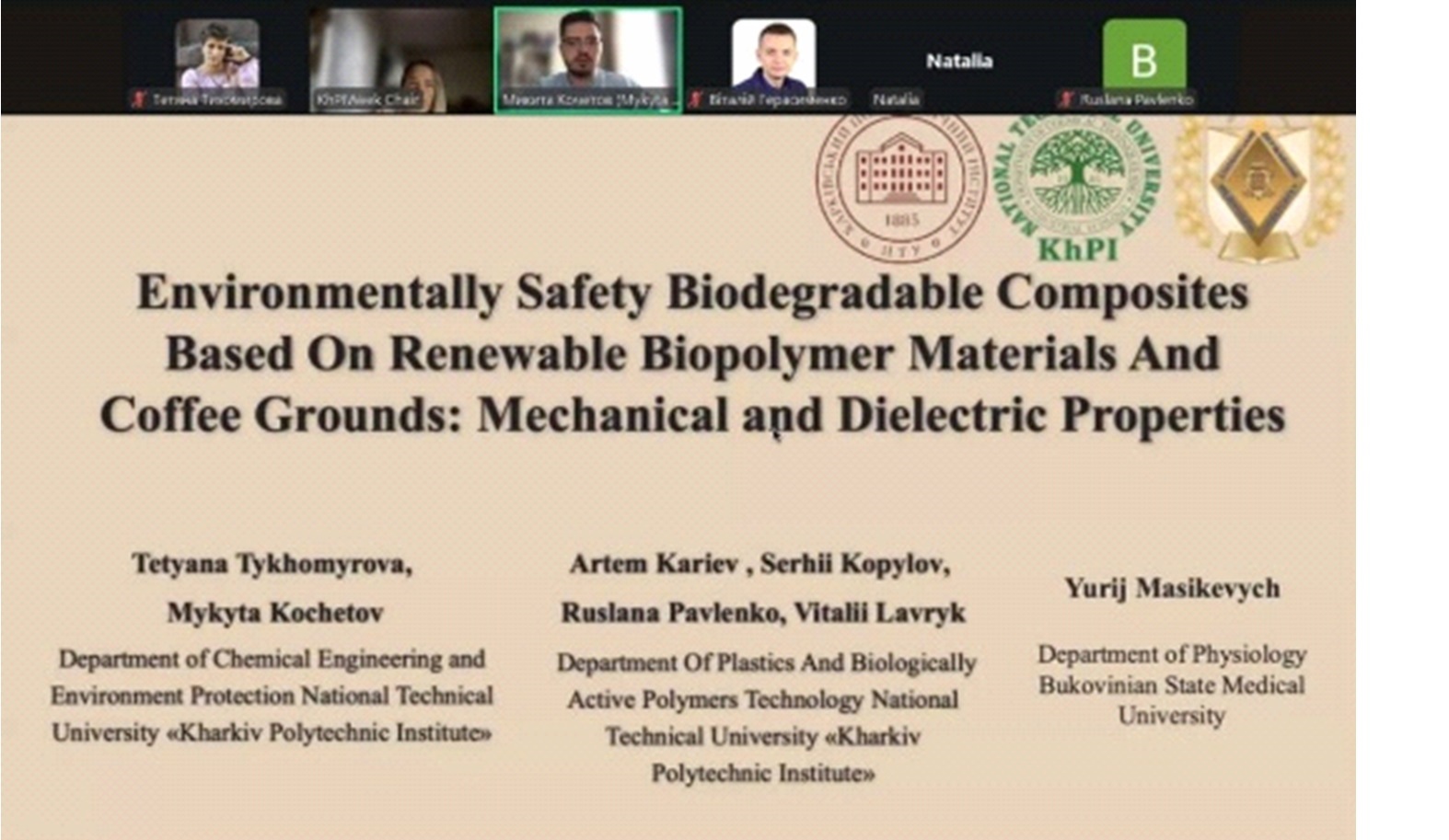 ⦁ M.S. Kochetov, under the supervision of Assoc. Prof. T.S. Tykhomyrova. “Development and implementation of an environmentally safe technology for the utilization of coffee production and consumption”