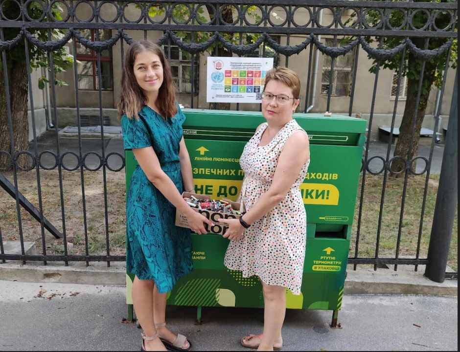 При наведенні ладу в аудиторіях та допоміжних приміщеннях за літо 2024 року доценти Тетяна Новожилова та Антоніна Сакун попередили потрапляння на полігон близько 10 кг батарейок, які вони ретельно зібрали та перемістили до контейнеру