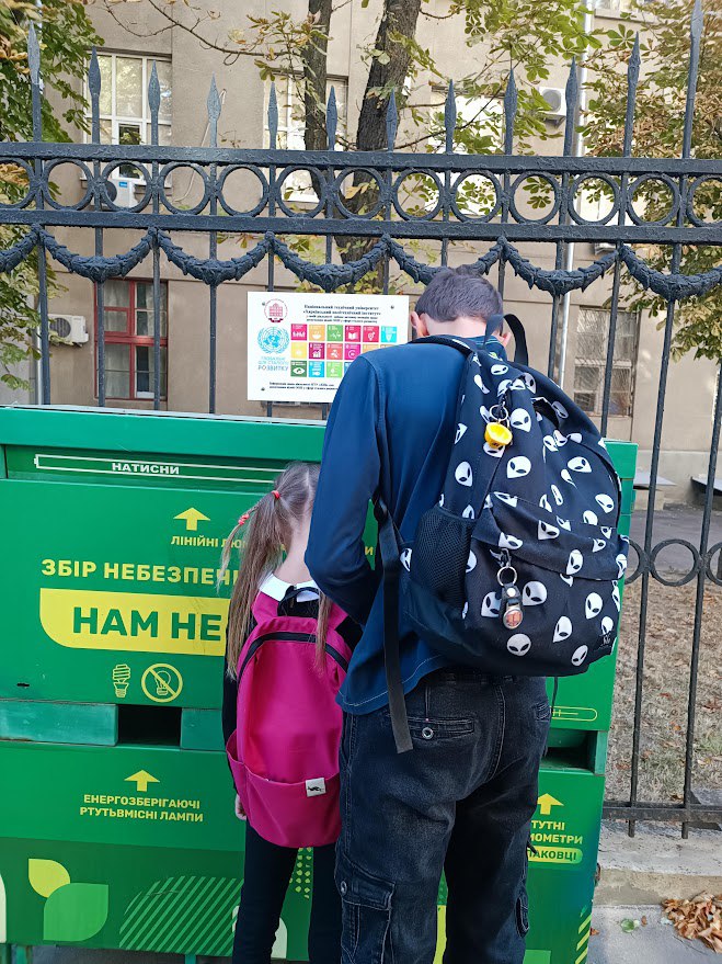 Майже рік тому, восени 2023 року біля паркану НТУ ХПІ за ініціативи нашої кафедри та власно адміністрації ХПІ було встановлено контейнер для безпечного збору небезпечних твердих відходів від населення. Для мешканців центральної частини незламного Харкова – це єдиний такий контейнер. Він систематично наповнюється та вивозиться для безпечної утилізації батарейок, ртутьвмісних ламп та термометрів.