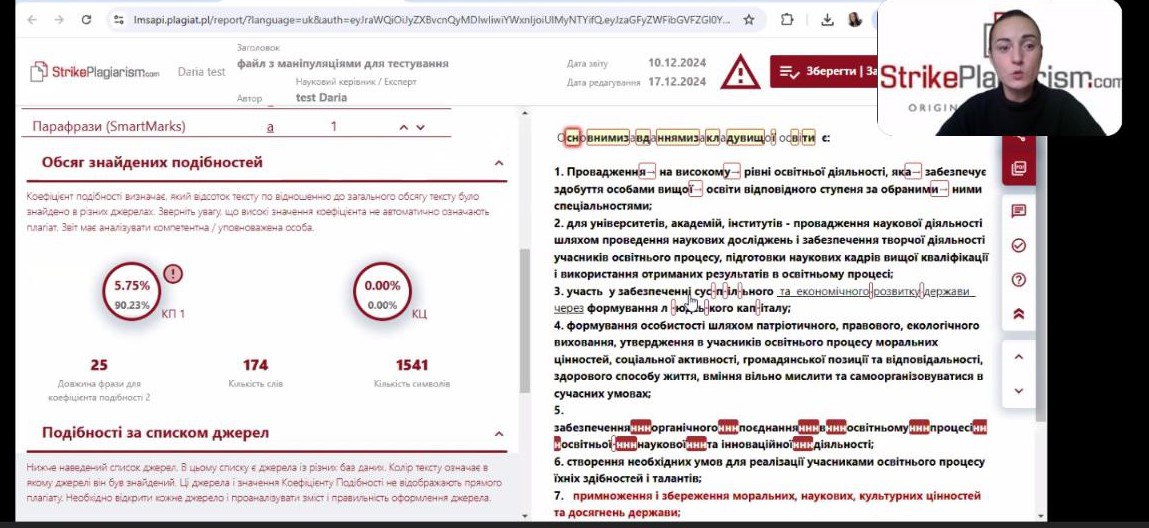 Завдяки вебінару стало зрозуміло, що означають відсотки у звітах, а також розтлумачено, чому обов’язково необхідно робити остаточний висновок після перегляду тексту робіт ще й викладачами.