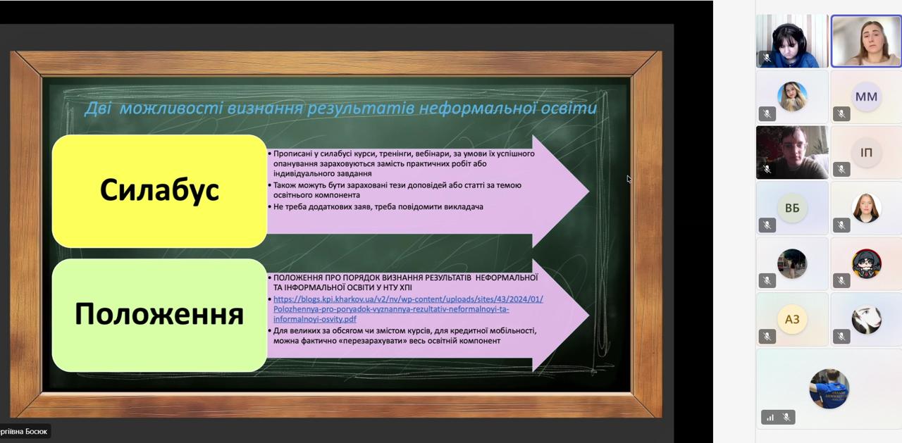 Здобувачів всіх рівнім освіти отримали на семінарі не тільки глибоке та детальне знайомство з процедурами, необхідними для такого зарахування, а й покрокову інструкцію для різних випадків зарахування. Сподіваємось, випадків визнання неформальної освіти побільшає!