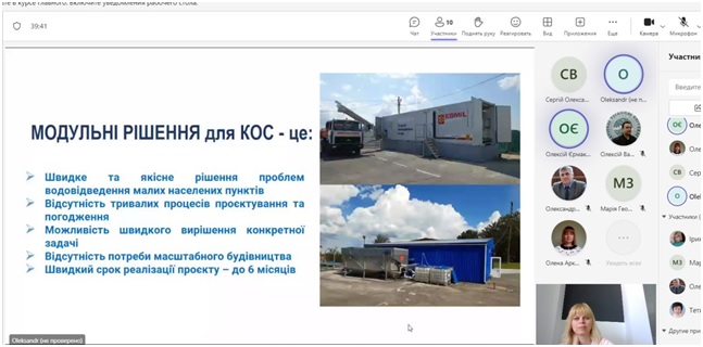 З доповіддю в он-лайн режимі виступили випускники кафедри, майбутні аспіранти Єрмаков О.В. з доповіддю на тему «Застосування сонячної енергії у вантажному транспорті» та Бойченко О.О. з доповіддю на тему «Переваги використання модульних і контейнерних виконань очисних споруд в сучасній Україні»