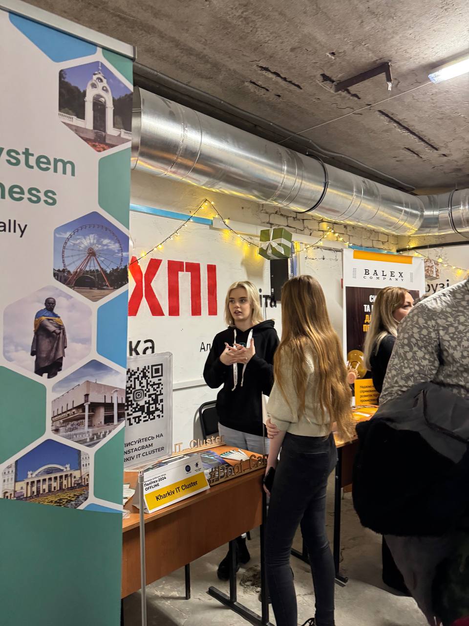 26 грудня в укритті Національного технічного університету «ХПІ» вперше за роки повномасштабного вторгнення відбувся Ярмарок вакансій «Політех–2024». Захід об’єднав понад 20 провідних підприємств і організацій, серед яких АТ «Харківобленерго», ТОВ «Техноком», IT-компанії, фармацевтичні підприємства, птахофабрики та інших представників економіки України.
