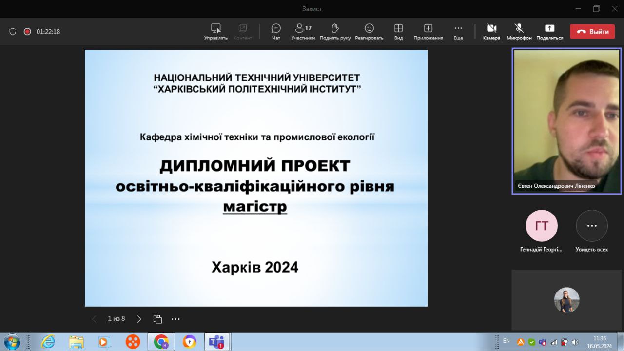 16 травня 2024 року на нашій кафедрі відбувся захист магістерських випускних кваліфікаційних робіт наукового спрямування студентів спеціальності 133 Галузеве машинобудування. Кафедра готує магістрів науковців за двома спеціалізаціями – обладнання хімічних виробництв та підприємств будівельних матеріалів та обладнання харчових та переробних виробництв.