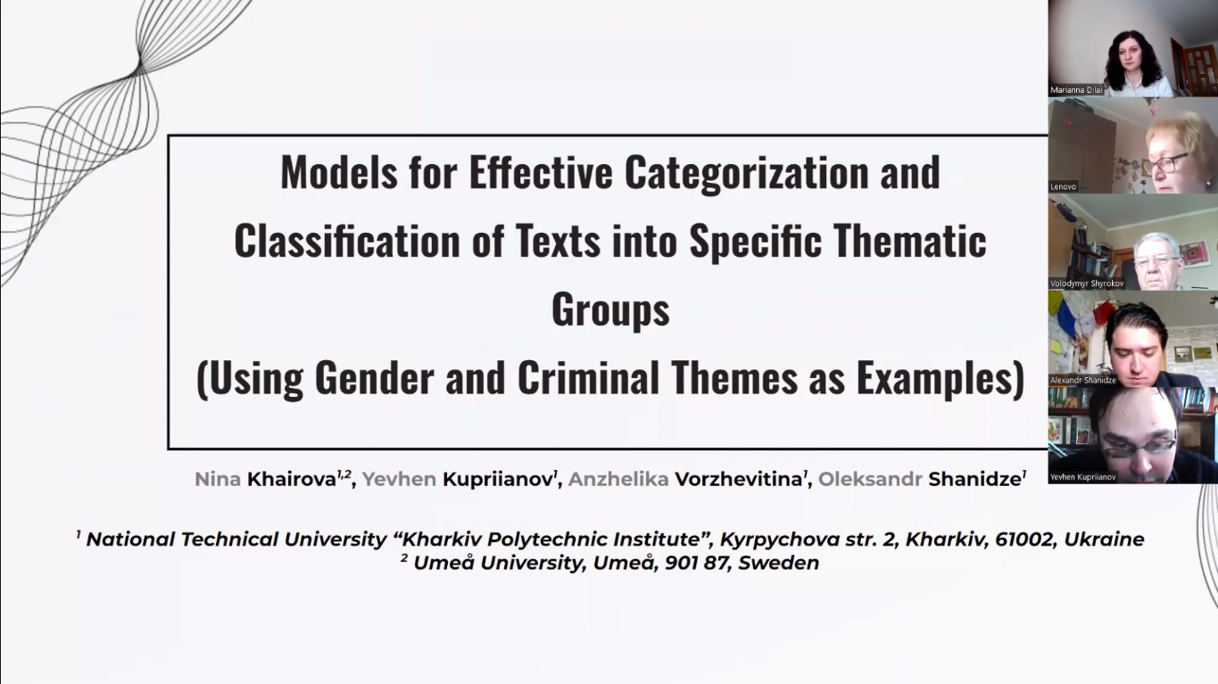 Зокрема, у конференції приймали участь викладачі нашої кафедри інтелектуальних комп’ютерних систем: Шаронова Наталія Валеріївна, Хайрова Ніна Феліксівна, Бабкова Надія Вікторівна, Гулієва Діна Олександрівна, Кочуєва Зоя Анатоліївна, Купріянов Євген Валерійович, Угольнікова Наталія Сергіївна, Шведова Марія Олексіївна.