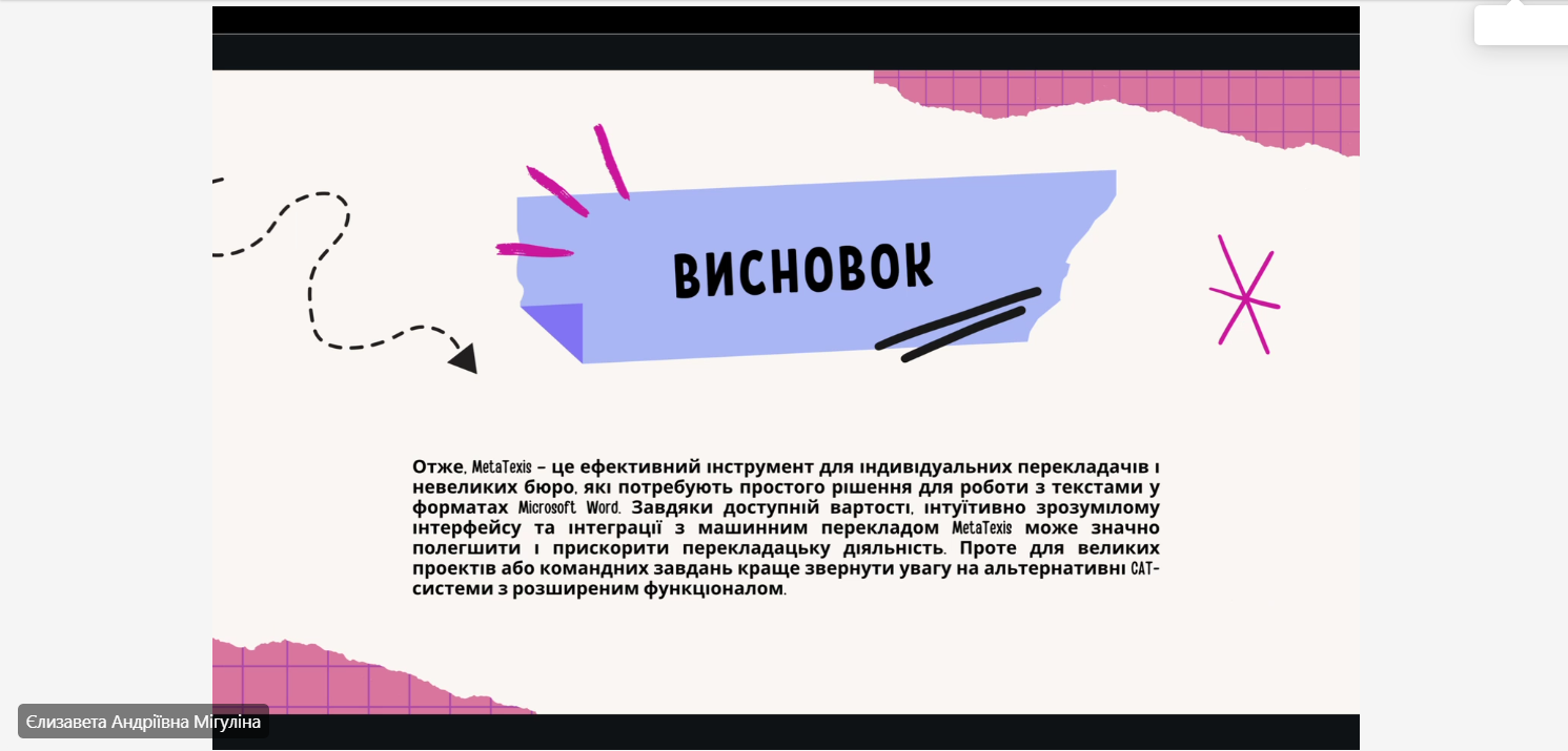 У своїх роботах студенти дослідили різні аспекти використання CAT-інструментів, включаючи їх функціональні можливості, переваги і недоліки та інше.