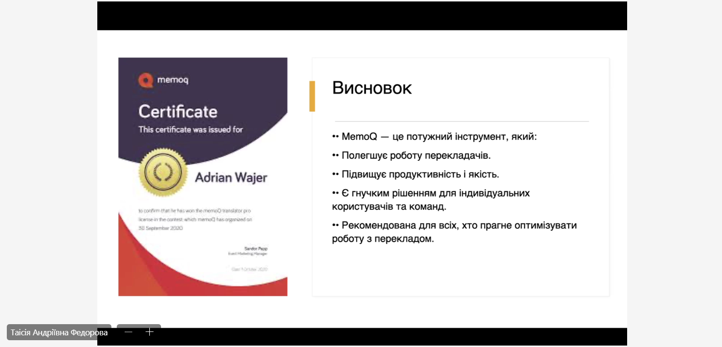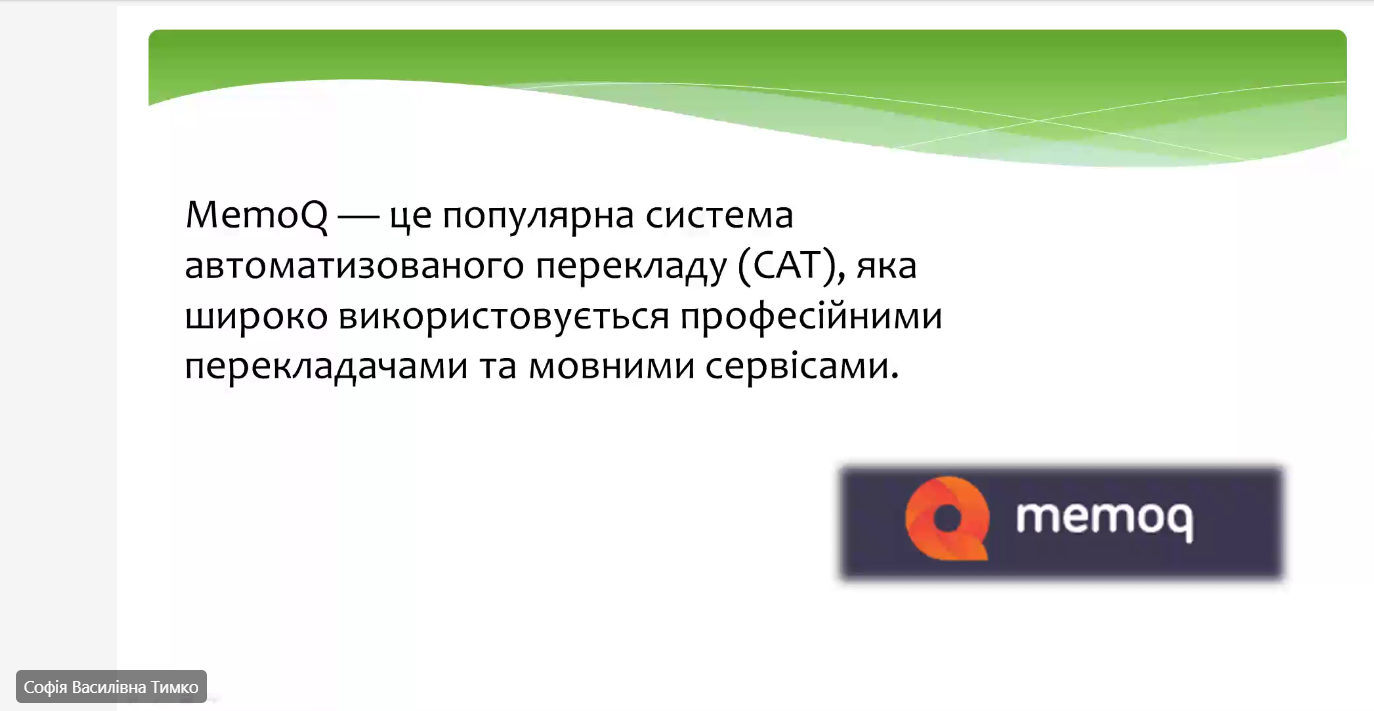 - MemoQ – Софія Тимко (СГТ-321В), Таісія Федорова (СГТ-321В)
