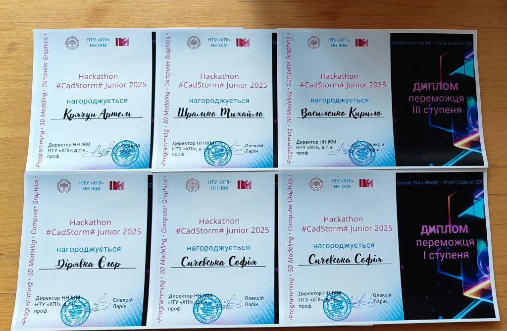 Журі зокрема наголосило на високому рівні мотивації, креативності та практичних навичок учасників. Переможці отримали призи від партнера, компанії SoftServe, сертифікати та надруковані 3D-моделі власних проєктів. У результаті заходу школяри побачили практичну сторону навчання на спеціальності F3 «Комп’ютерні науки». Вони дізналися, як знання з програмування, алгоритмів, комп’ютерної графіки та моделювання поєднуються у реальних проєктах і відкривають шлях до професій у сферах IT-розробки, геймдеву, AR/VR-технологій, інженерного проєктування, цифрового дизайну та наукоємних індустрій. Саме на цих напрямах зосереджена освітня підготовка в Інституті комп’ютерного моделювання, прикладної фізики та математики «ХПІ», де студенти з перших курсів працюють з інструментами та підходами, затребуваними на сучасному ринку праці.