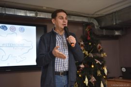 У фіналі Володимир захищав бізнес-кейс, стартап команди студентів і викладачів кафедри комп’ютерного моделювання процесів та систем, «Smart Quadcopter: гібридний квадрокоптер для автоматичного моніторингу, доставки вантажів і контролю безпеки і охорони технічних об’єктів».