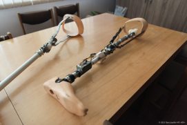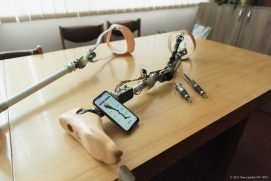 «Проєкт створення інтелектуального протезу нижньої кінцівки стартував за запитом Інституту патології хребта та суглобів ім. М. І. Ситенка, який впроваджує осеоінтеграційне протезування – метод, за якого протез з’єднується безпосередньо з кісткою за допомогою імпланту, – пояснює доцент кафедри промислової і біомедичної електроніки НТУ «ХПІ» Михайло Шишкін. – Таке рішення дозволяє зробити протез майже продовженням скелету, зменшує біль і натирання м’яких тканин, покращує контроль протеза та робить ходу більш природною. Водночас цей метод потребує обережної реабілітації, адже надмірне навантаження на імплант може призвести до ускладнень. Саме тому лікарям важливо точно знати, які навантаження виникають під час руху пацієнта». За словами науковця, фахівці кафедри промислової та біомедичної електроніки ХПІ створили систему моніторингу, яка вимірює навантаження в протезі та на імпланті, а також фіксує поперечні сили, швидкість і прискорення рухів.