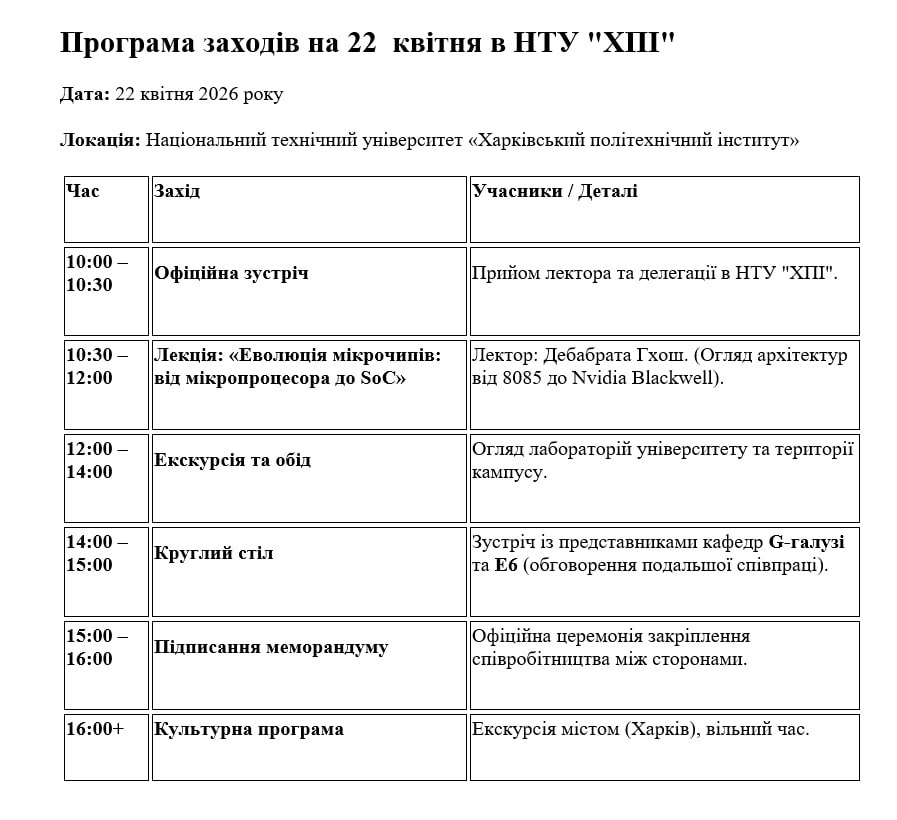 • 12:00 – 14:00 | Екскурсія лабораторіями НТУ «ХПІ» та огляд кампусу.