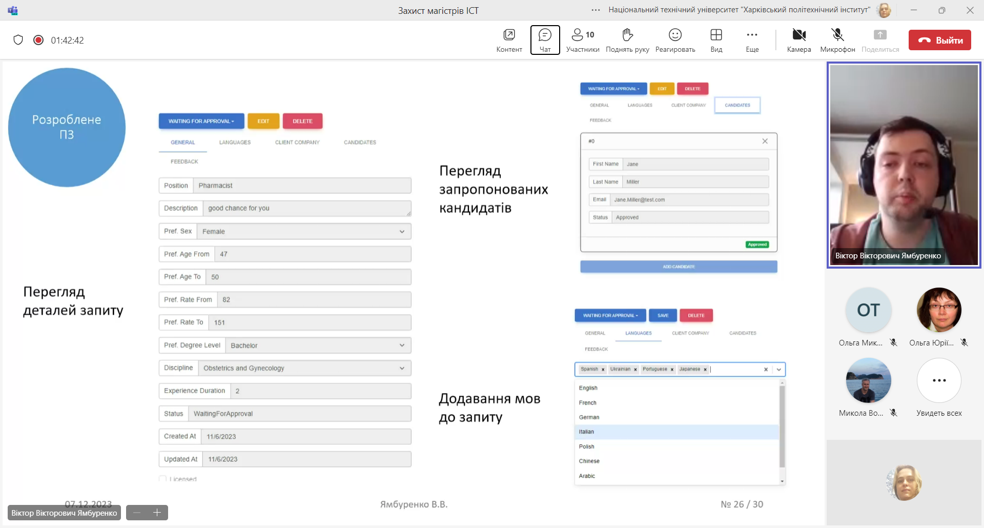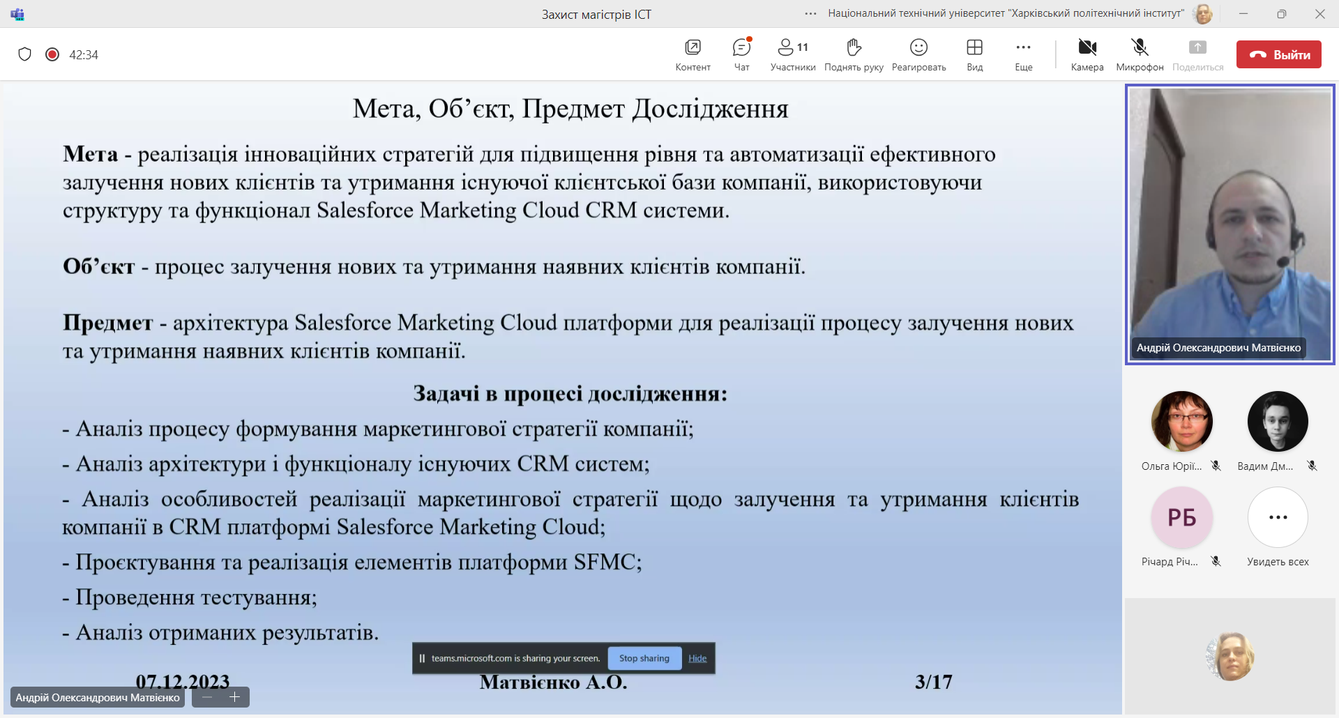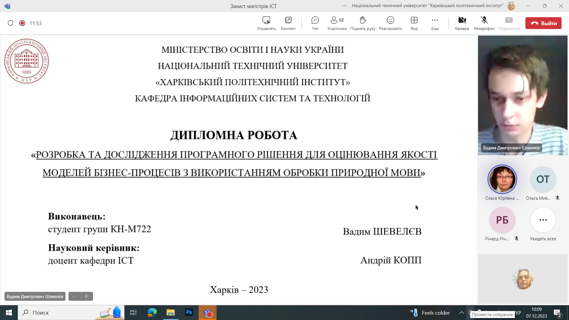 07.12.2023 пройшли захисти робіт магістрів на кафедрі «Інформаційних систем та технологій»