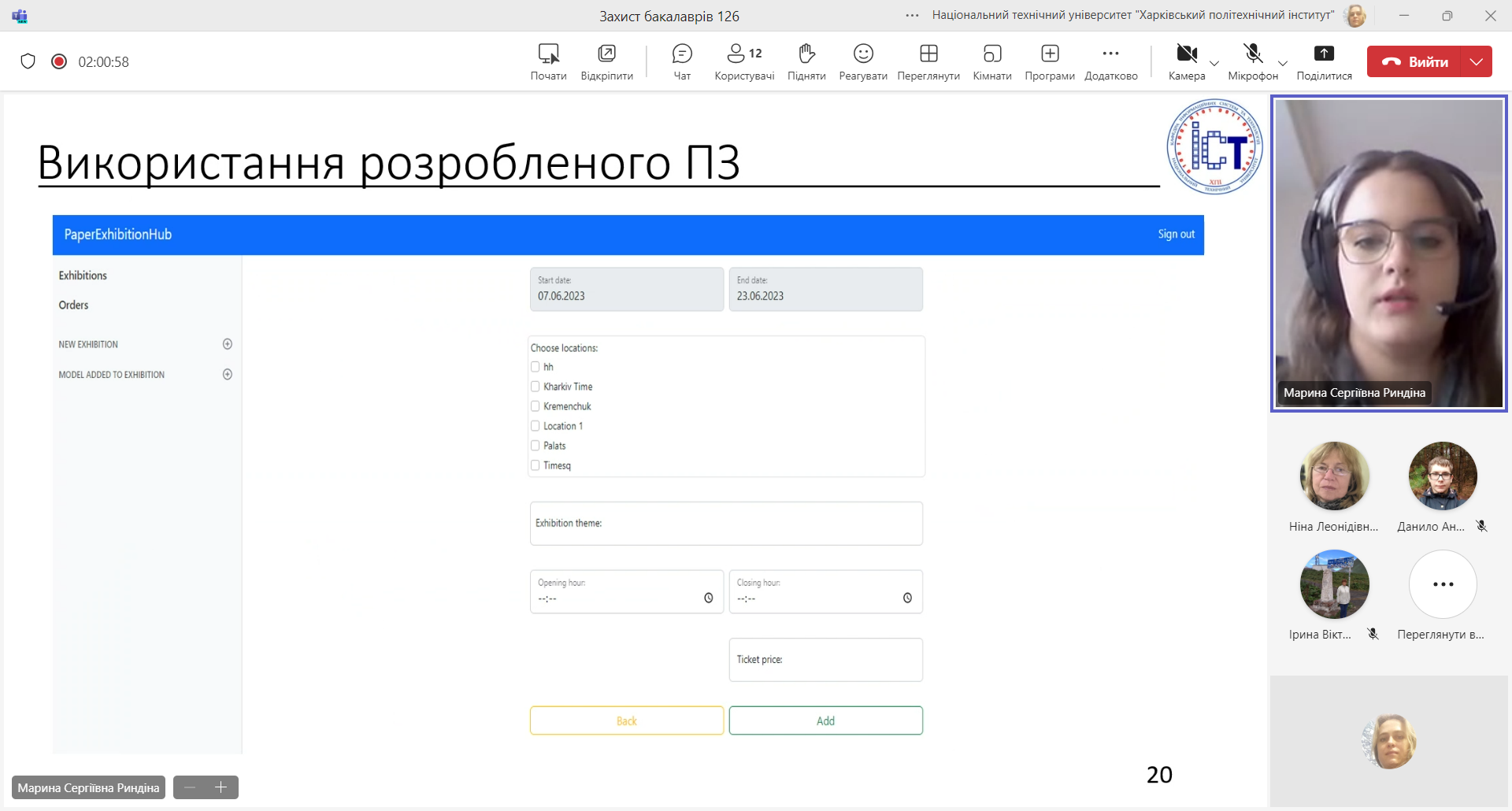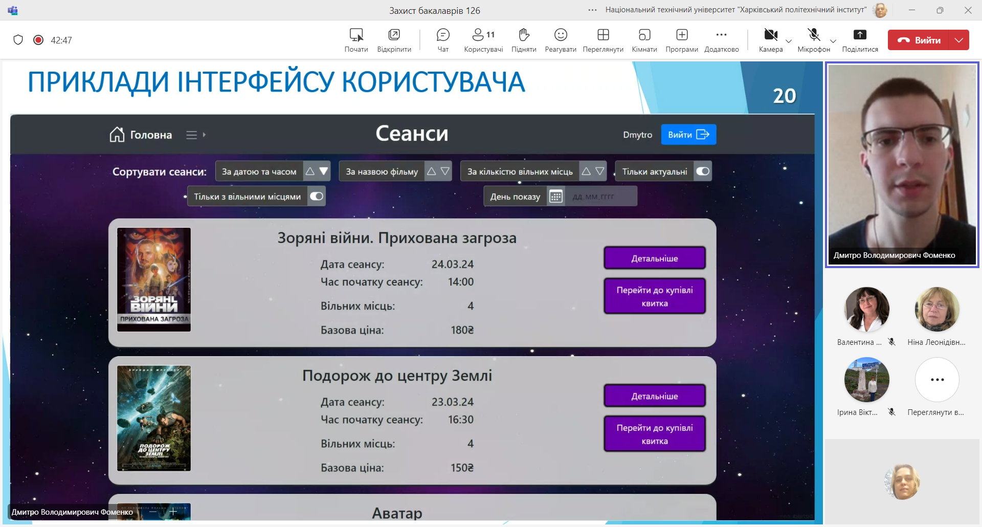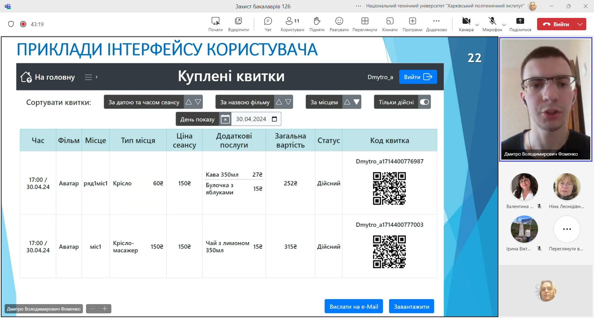 14.06.2024 пройшов перший день захисту робіт бакалаврів на кафедрі «Інформаційних систем та технологій» за 126 спеціальністю за освітньою програмою «Програмне забезпечення інформаційних систем». Запропоновані роботи були розпочаті, ще на 3 курсі в рамках співпраці з менторами Ерам та за курсом «Архітектура та проєктування програмного забезпечення»