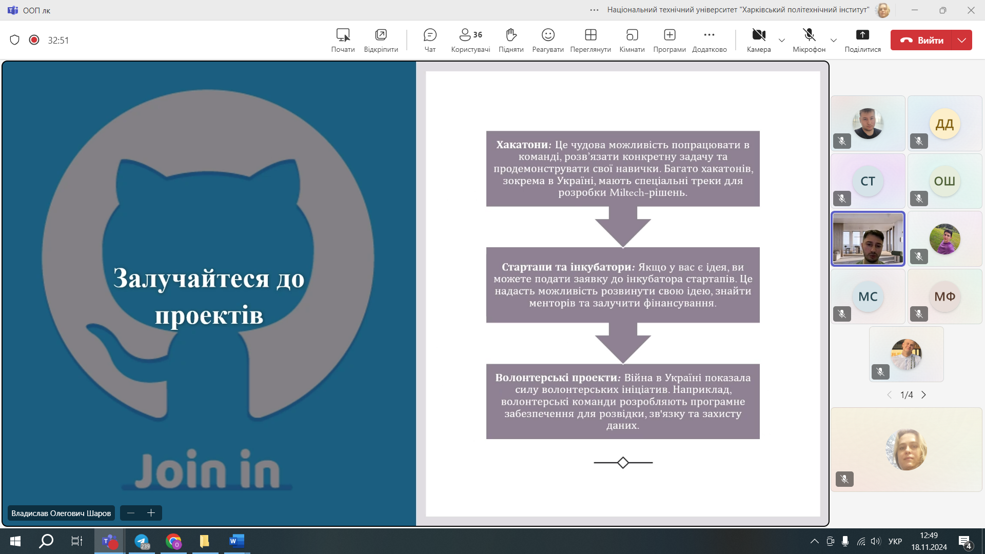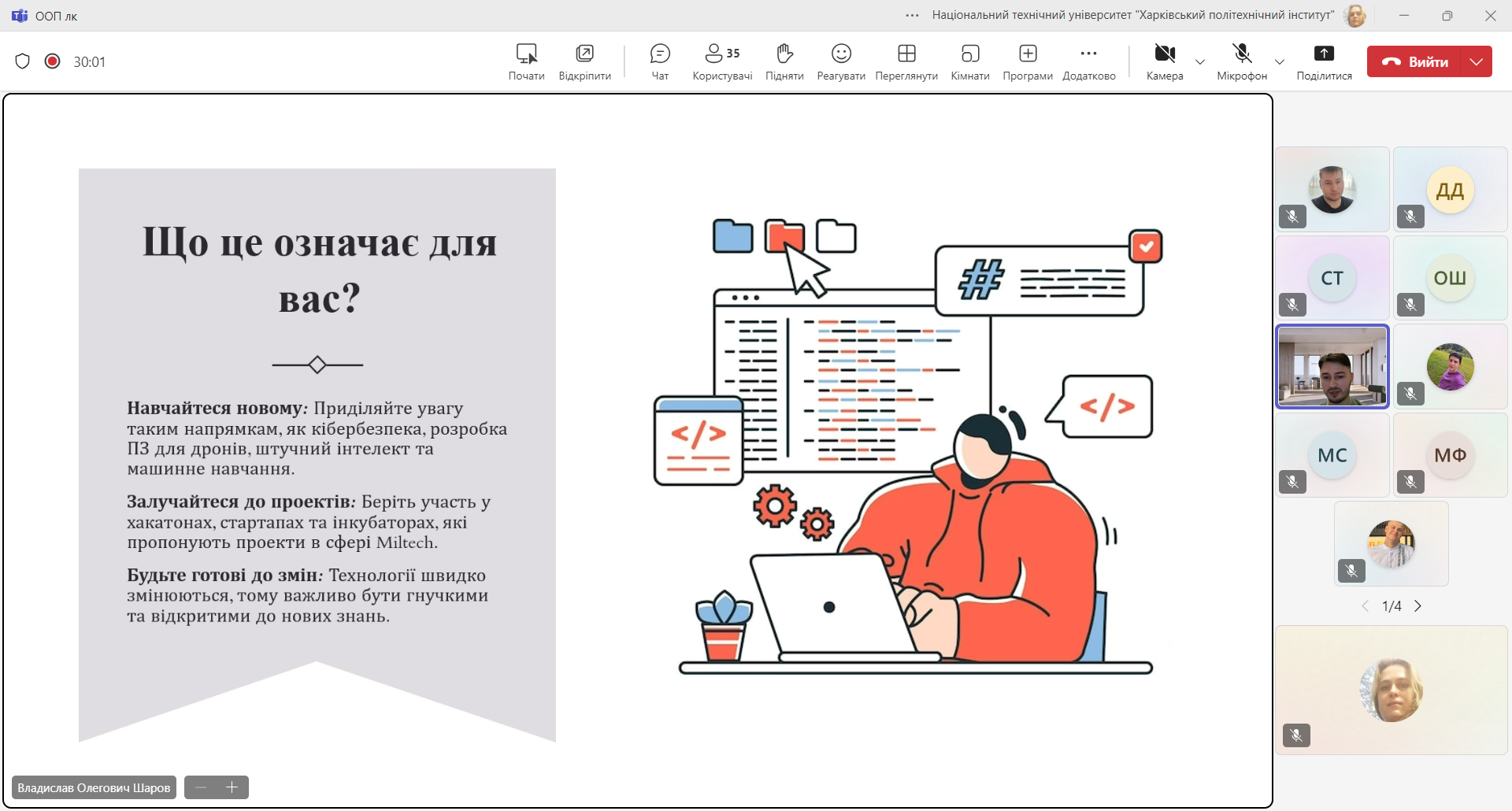 У межах заходу спікер поділився з учасниками своїм досвідом роботи в ІТ-секторі, окреслив основні тенденції та виклики українського ІТ-ринку, а також розповів про роль фінансових технологій у сучасному цифровому світі. Владислав також надав цінні поради студентам щодо побудови кар’єри у сфері інформаційних технологій, розвитку професійних навичок і важливості проєктного підходу в реалізації ІТ-рішень.