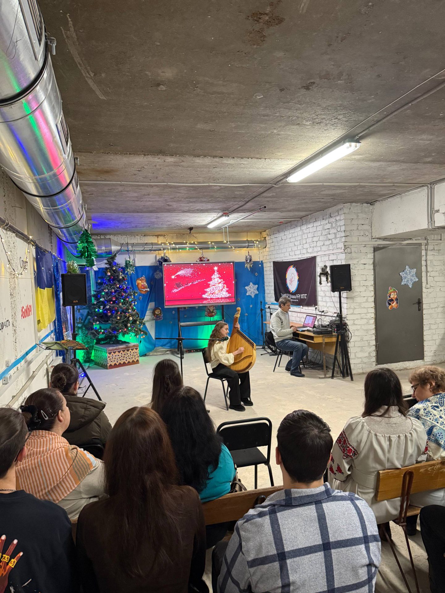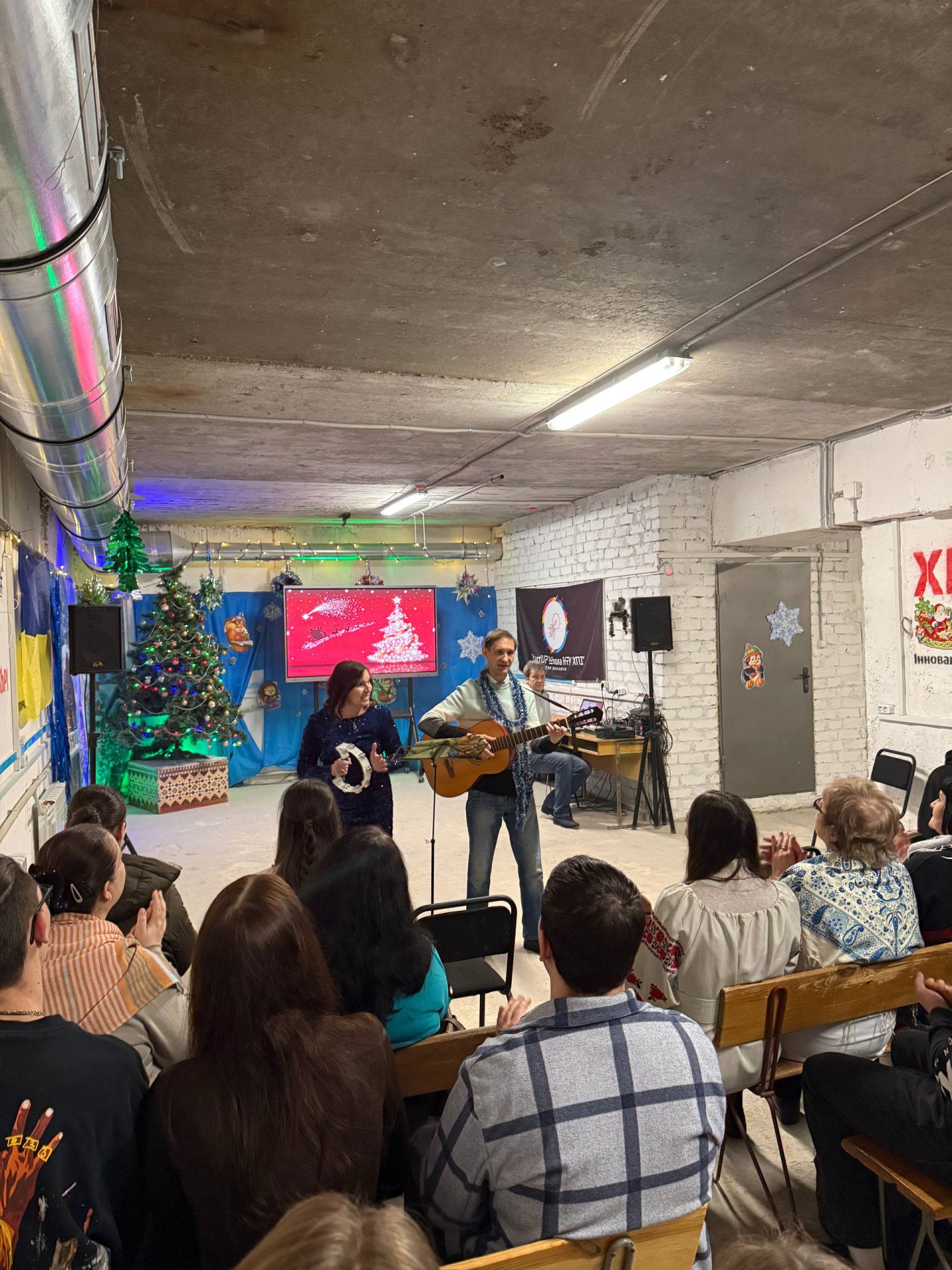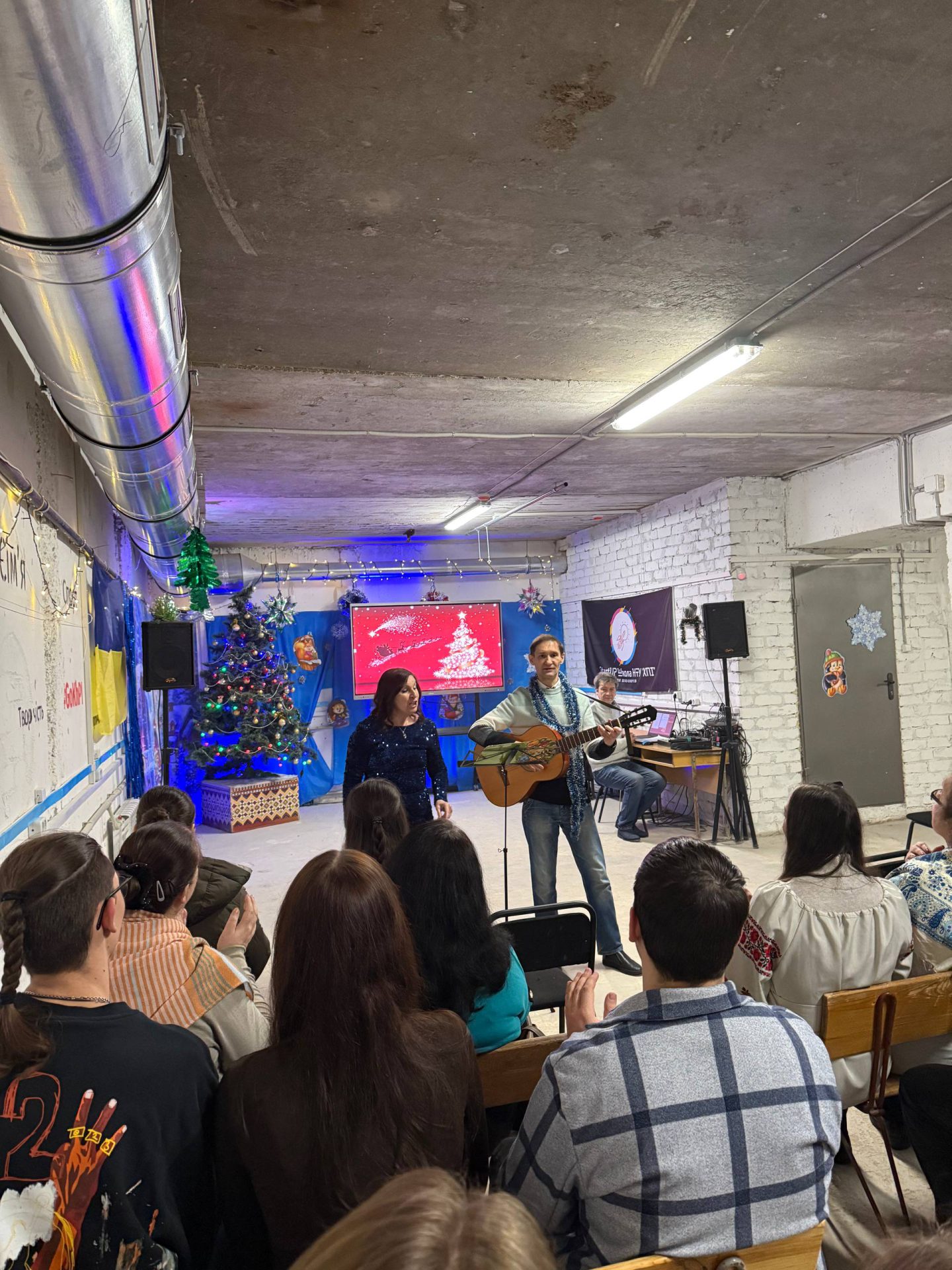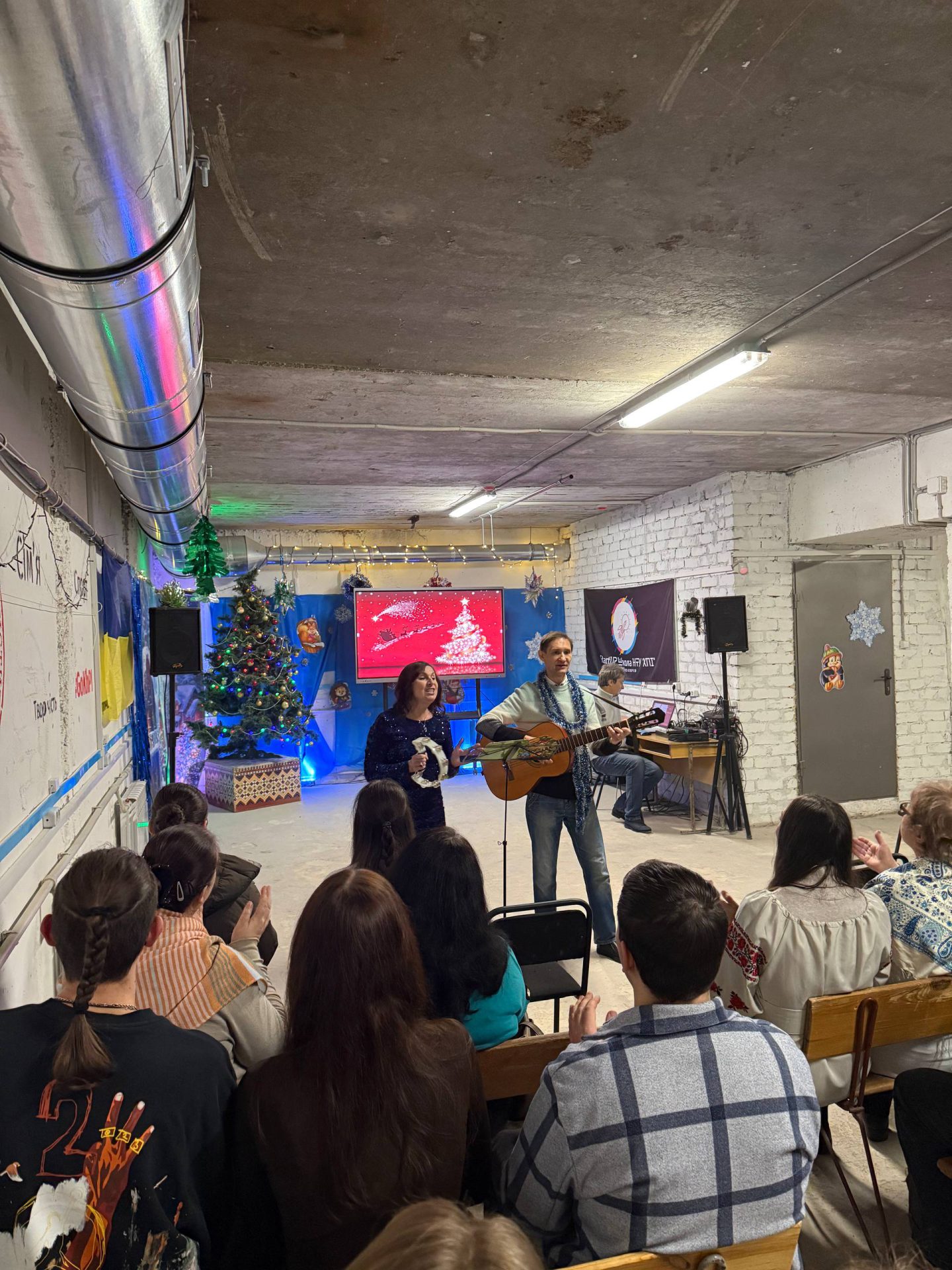 До святкування з приводу настання нового 2026 року було залучено майже сотню людей: студенти, викладачі та керівники підрозділів, у тому числі, представники директорату Навчально-наукового інституту хімічних технологій та інженерії. Для присутніх виступили не тільки учасники студентської самодіяльності, але й викладачі. Серед них – доцент кафедри ІТПА, к.т.н., заступник директора ННІ ХТІ з навчально-виховної роботи Сергій Миколайович Биканов. Захід відбувася в укритті.