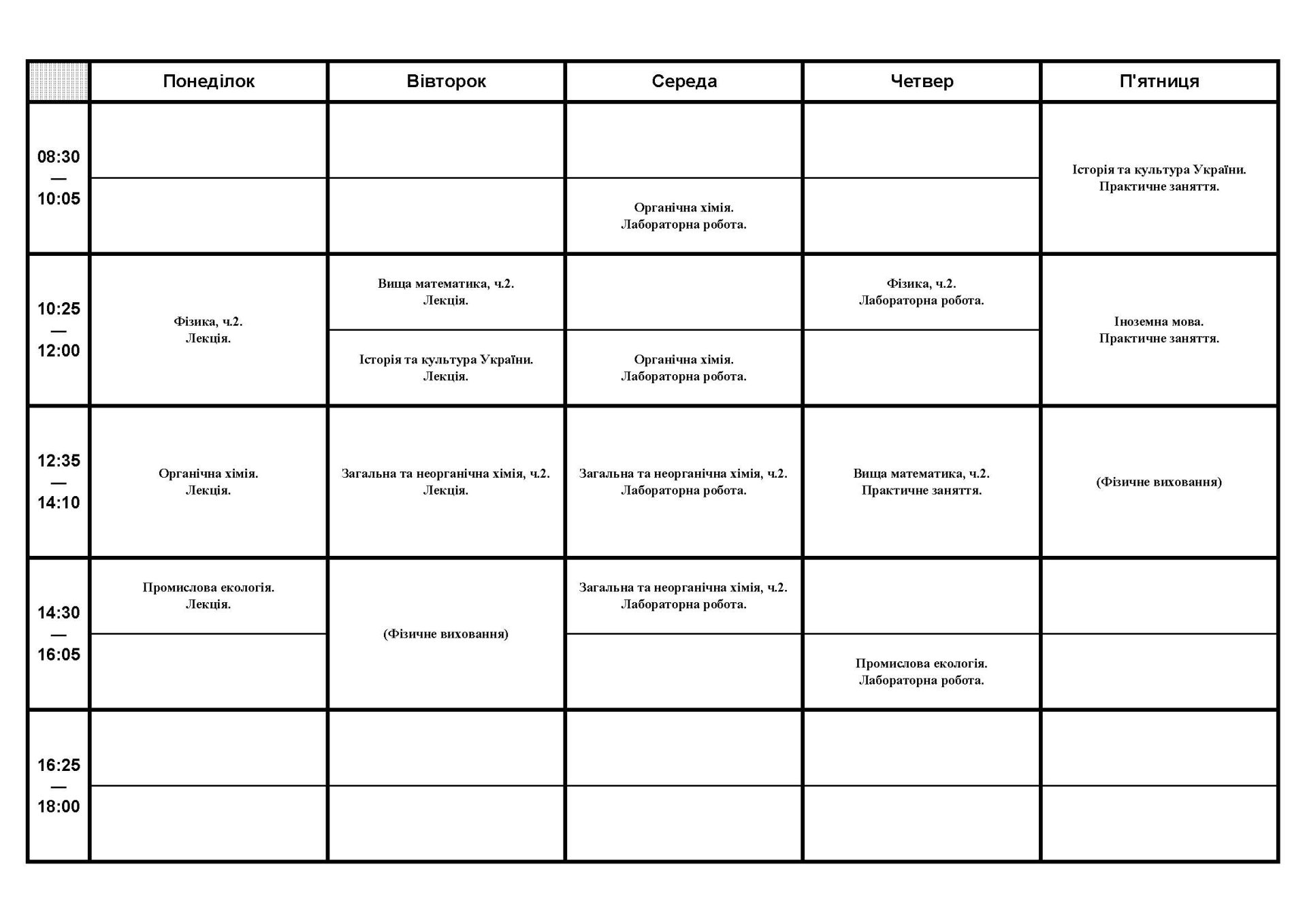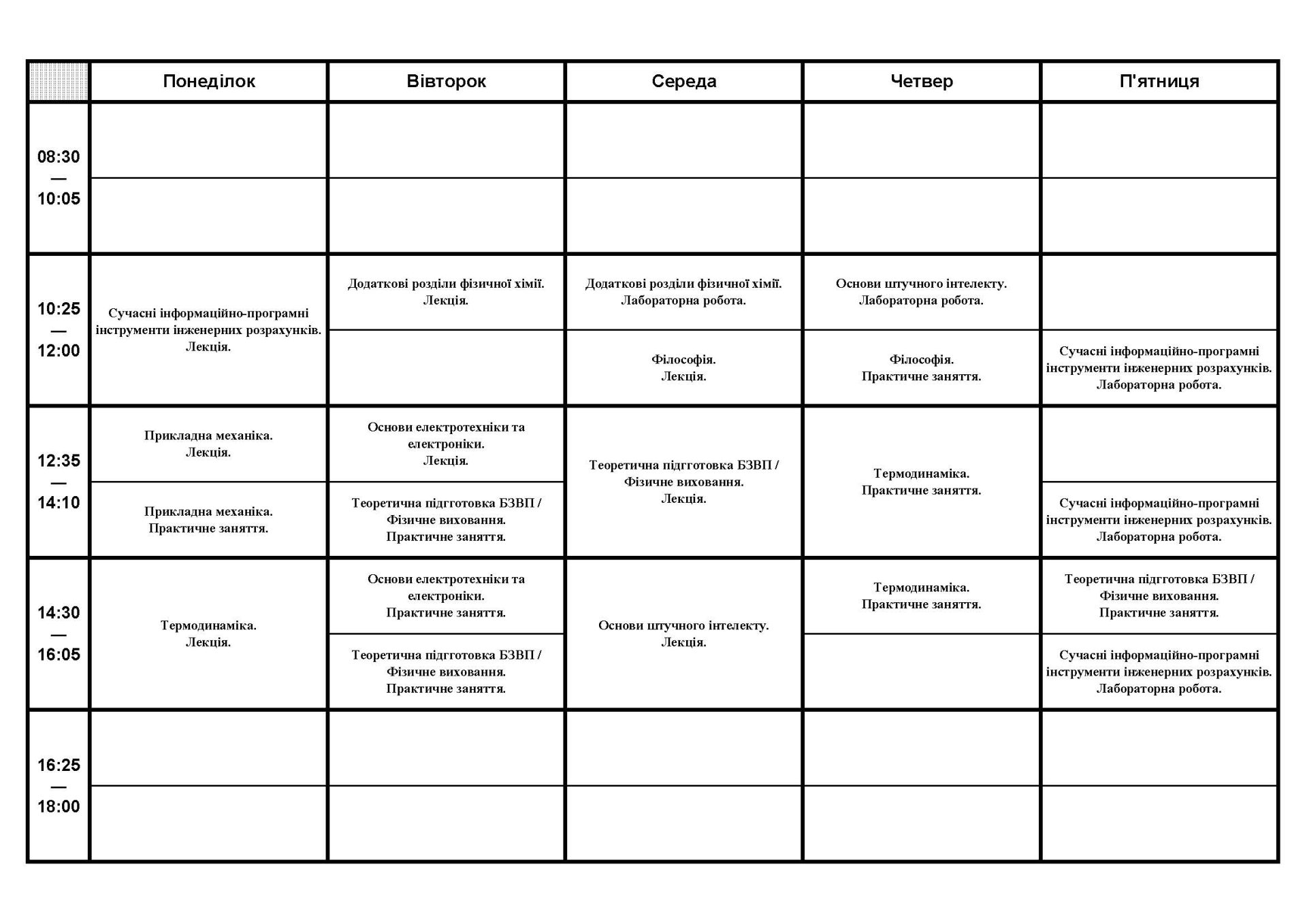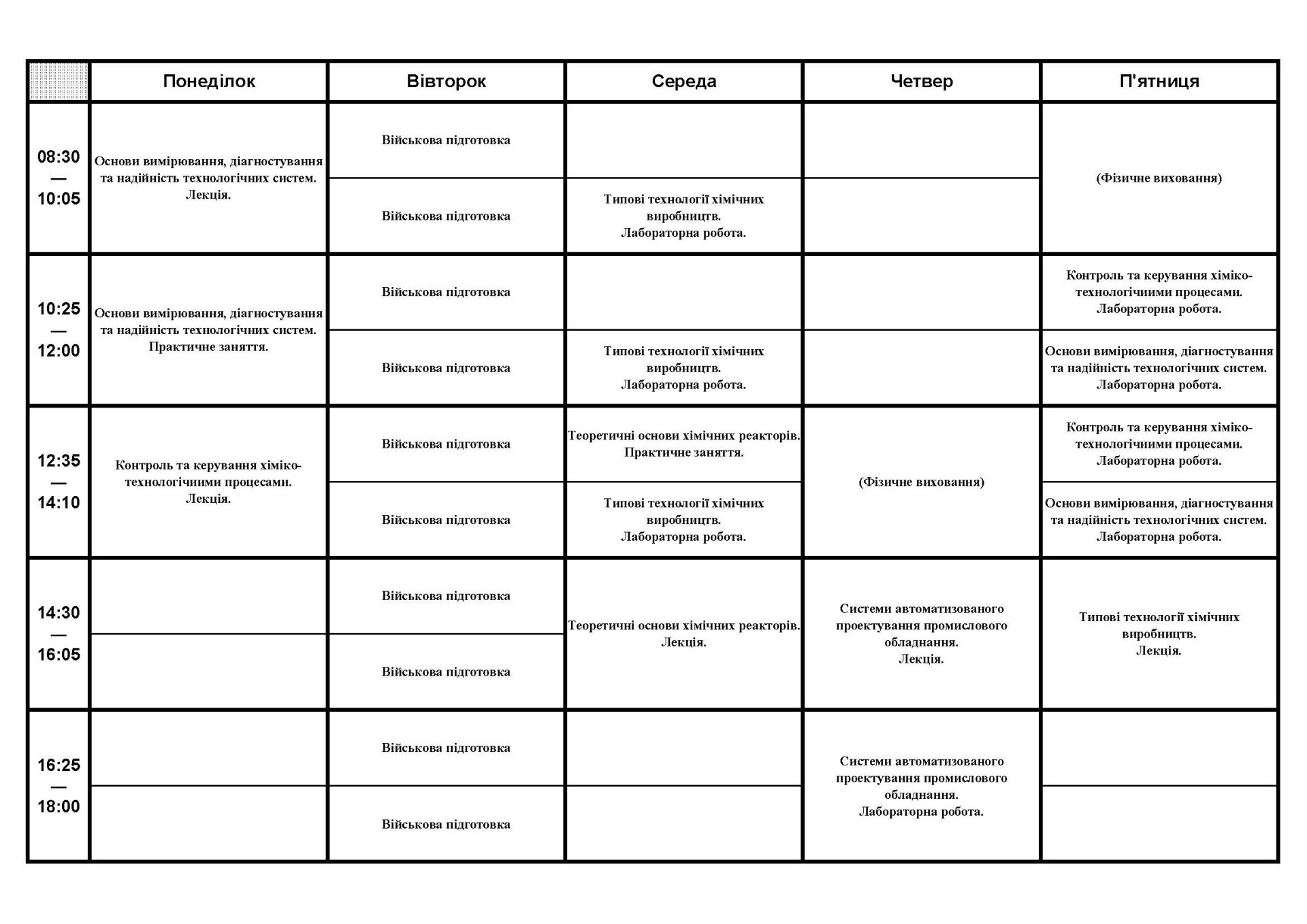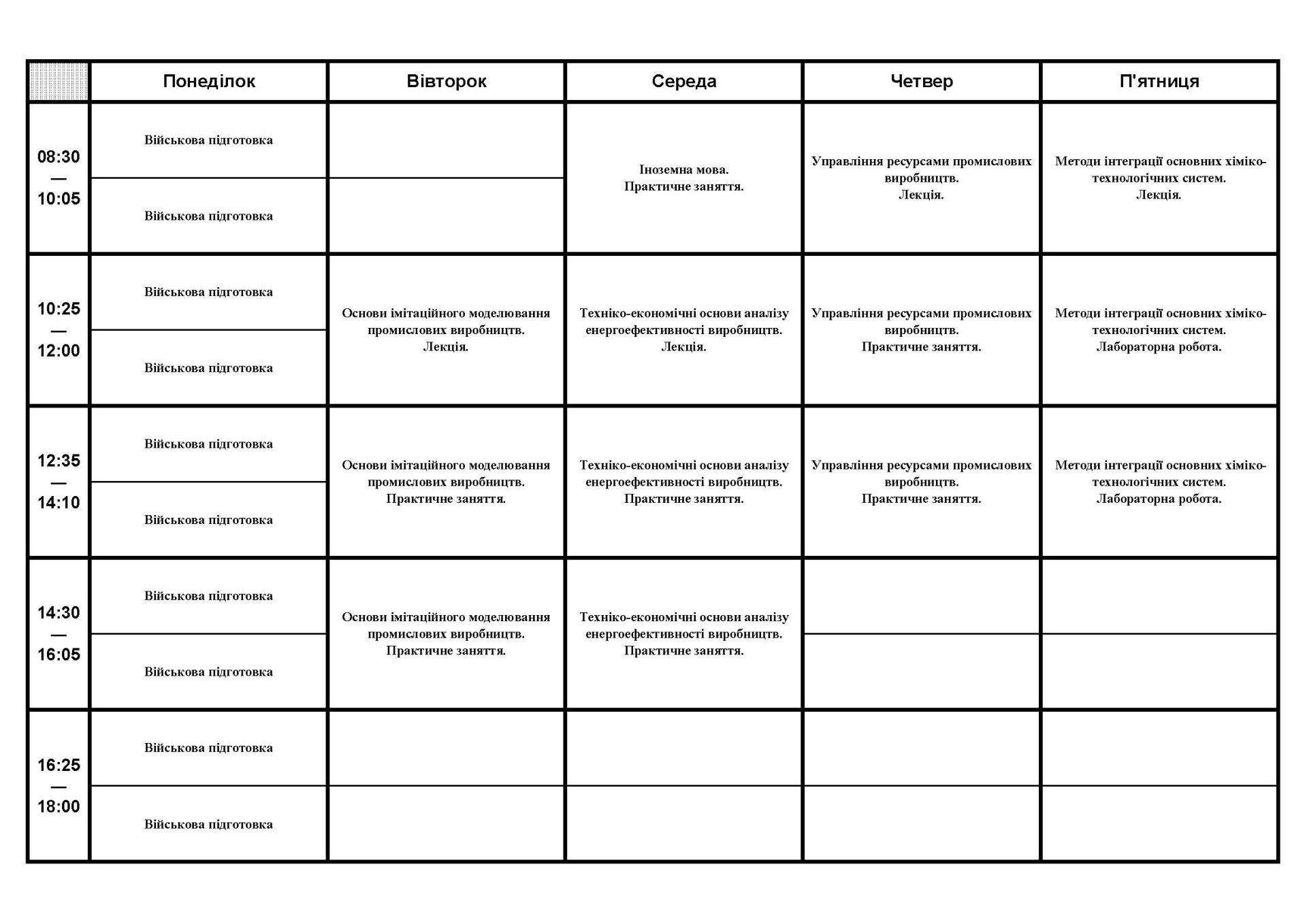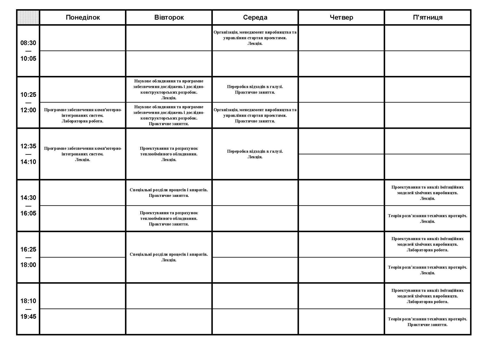 Розклад занять студентів кафедри ІТПА