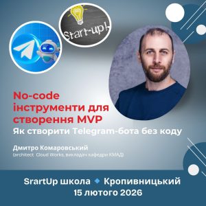15 лютого 2026 року в межах Стартап-школи у Кропивницькому відбувся майстер-клас від кафедри КМАД на тему «No-code інструменти для створення MVP. Як створити Telegram-бота без коду». Від ідеї до MVP Під час заняття учасники розглянули, як вибудовується розвиток продукту за Читати далі
