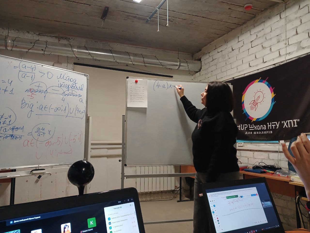 Заняття проходять у змішаному форматі: школярі можуть відвідувати їх офлайн у просторі НТУ «ХПІ» або приєднуватися онлайн. Учасники розбирають задачі з параметрами, виконують практичні завдання та отримують матеріали для самостійної роботи.