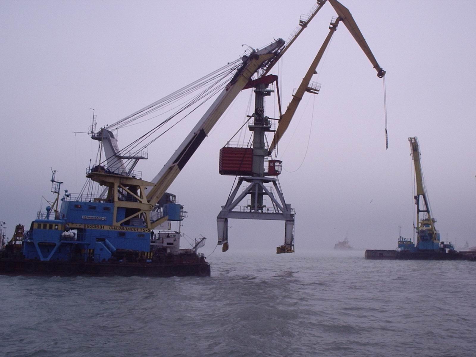 | Самый грузоподъемный кран (1200 т) на колесном шасси фирмы «Liebherr» | Самый крупный плавучий кран (14200 т) фирмы «Meerema» |