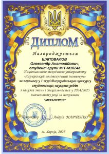 Вітаємо студентів кафедри з перемогою у I турі Всеукраїнського конкурсу студентських наукових робіт