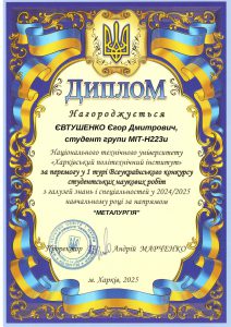 2. ЄВТУШЕНКО Єгор Дмитрович
