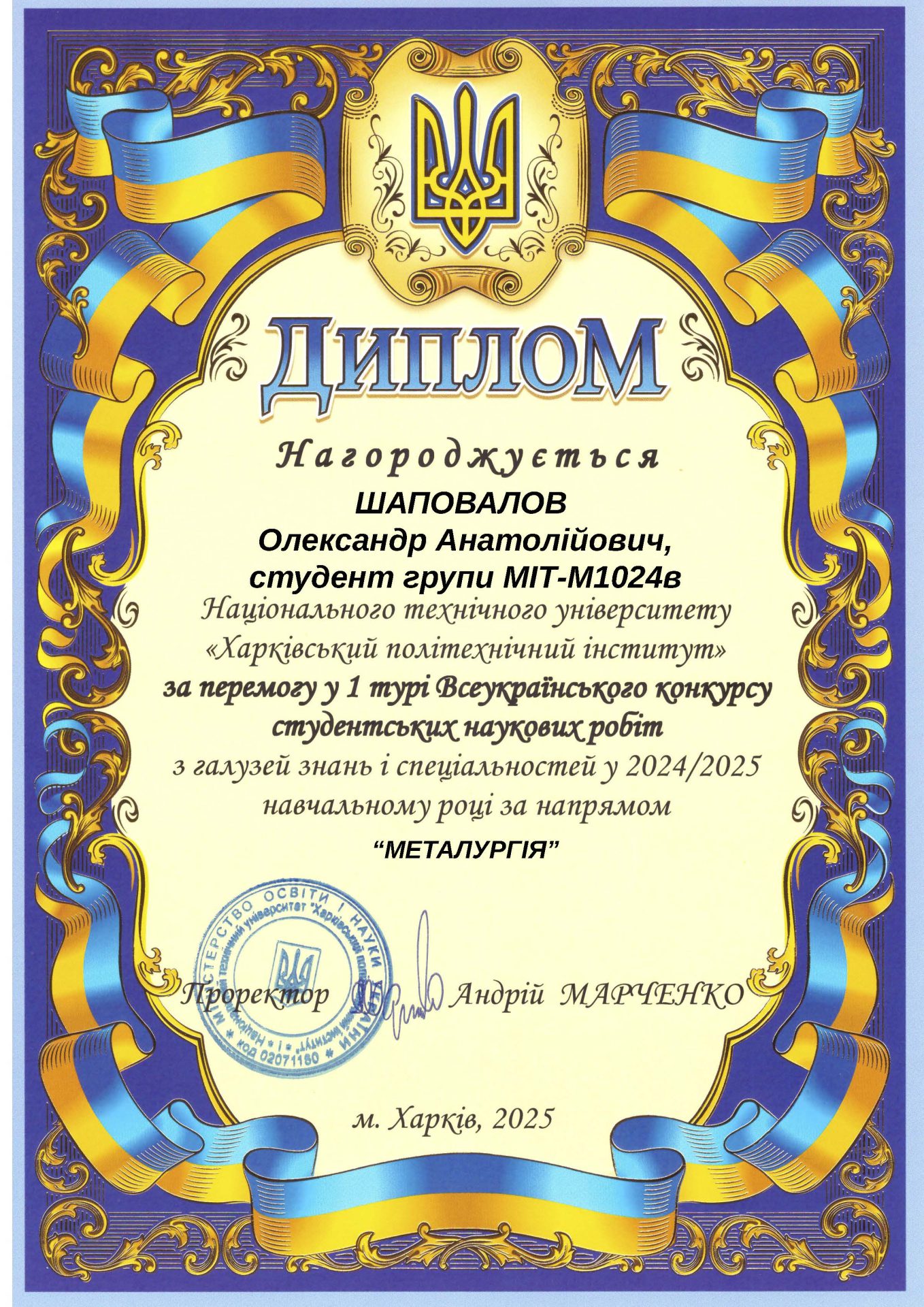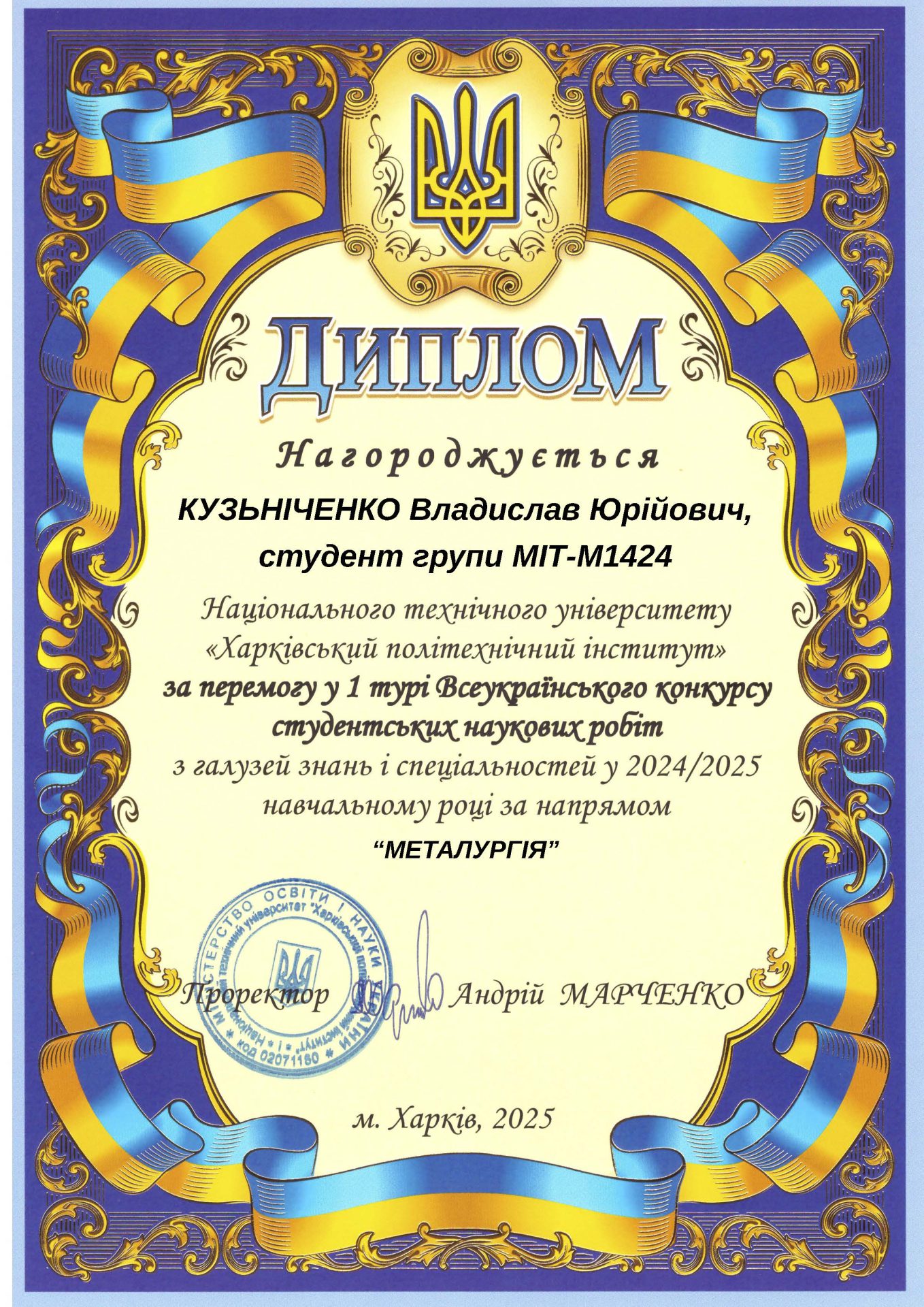 Вітаємо студентів кафедри з перемогою у I турі Всеукраїнського конкурсу студентських наукових робіт