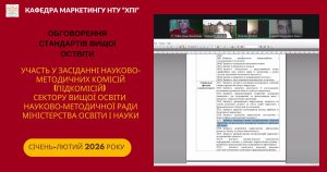 📍 During January-February 2026, meetings of the scientific and methodological commissions (NMK) of the higher education sector of the Scientific and Methodological Council of the Ministry of Education and Science of Ukraine in the specialty D5 Marketing are taking place.